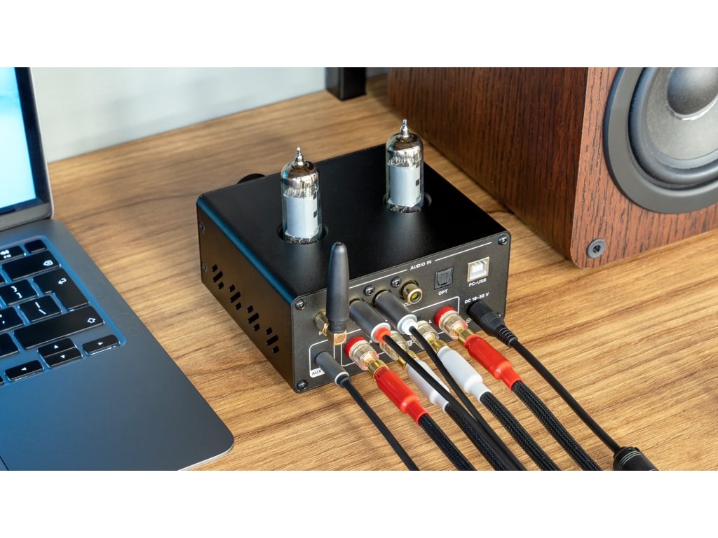 A 2x100 teljesítményen működő Kruger&Matz sztereó erősítőben 6K4-es csöveket használnak, amelyek meleg és természetes hangzást produkálnak nagy mélységgel és tisztasággal.