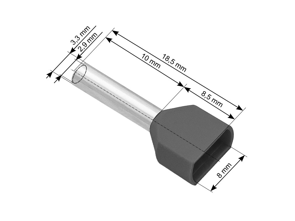 Szürke szigetelő csatlakozóhüvely 2x2,5/10