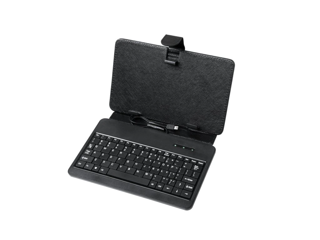 Univerzális Quer borítás billentyűzettel ellátott táblagépekhez, amely hatékonyan védi a készüléket a sérülésektől. A borító állvánnyal rendelkezik, amely lehetővé teszi a táblagép pozicionálását a könnyű gépeléshez, webböngészéshez stb. A billentyűzet egy mini USB-kábellel csatlakoztatható.