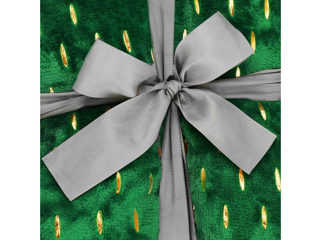 - A takaró elegáns szürke szalaggal van körbetekerve