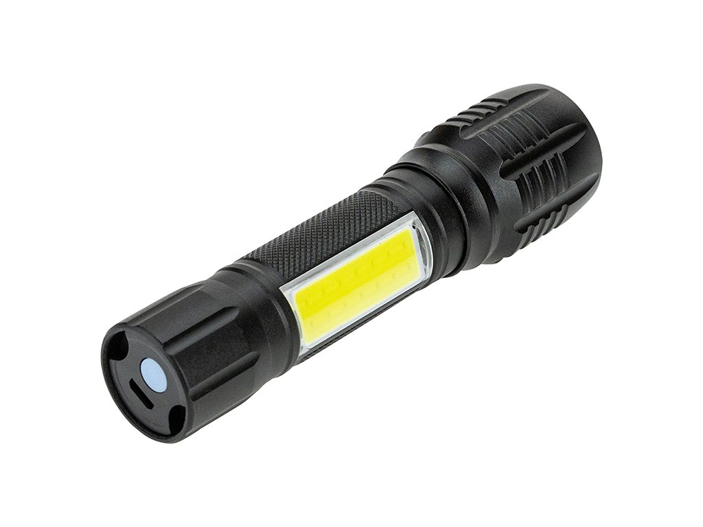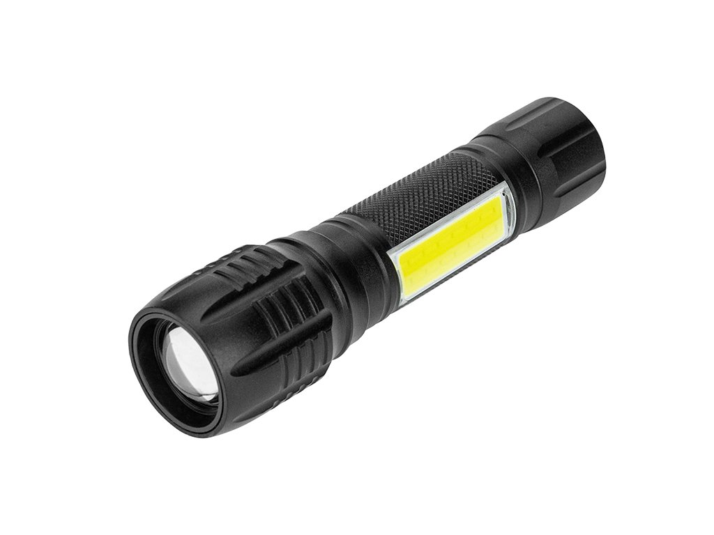 - Három beépített üzemmód - egyetlen fény széles és közeli vagy keskeny és távoli megvilágítási lehetőséggel, SOS stroboszkóp és oldalsó megvilágítás