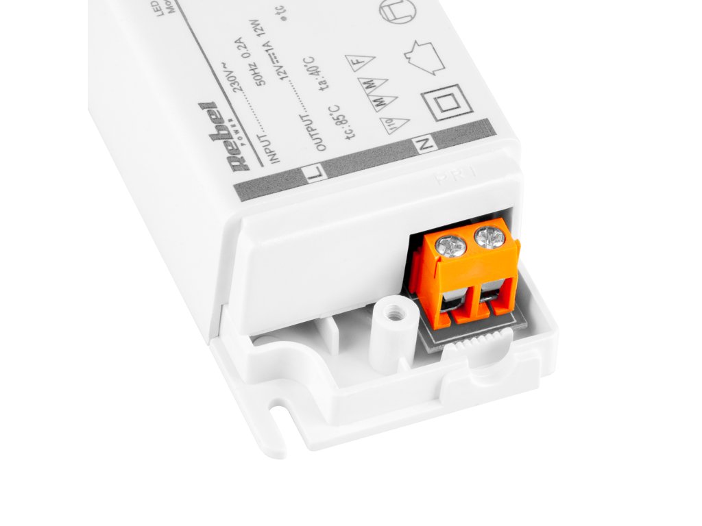 Teljesítmény: max. 12 W / 1 A Bemenet: 230 V AC, 50 Hz Kimenet: 12 V DC Méretek: 90x40x24 mm