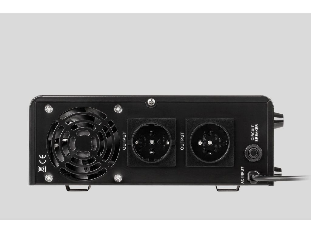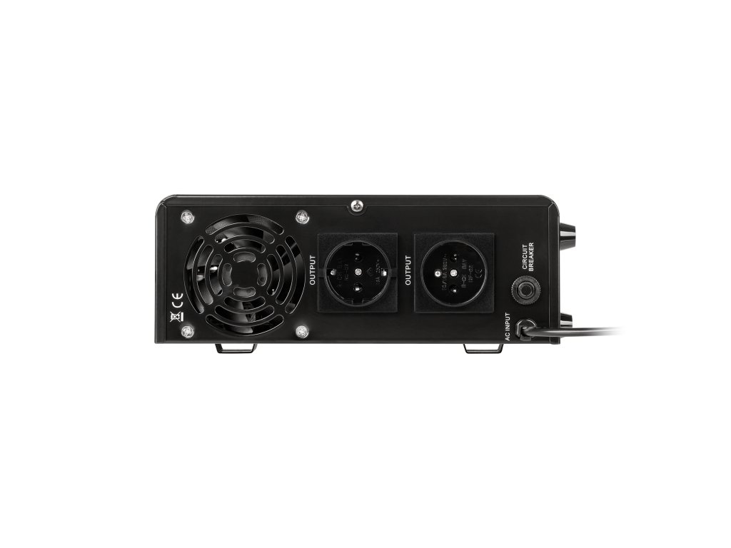 • Menovitý výkon: 500 W• Typ batérie: 12 V DC• Vstupné napätie: 180 - 275 V AC• Výstupné napätie: 230 V AC +/-8%• Tvar výstupného napätia: čistá sínusoida• Nabíjací prúd batérie: 10 A• Časové prepínanie: =< 4 ms