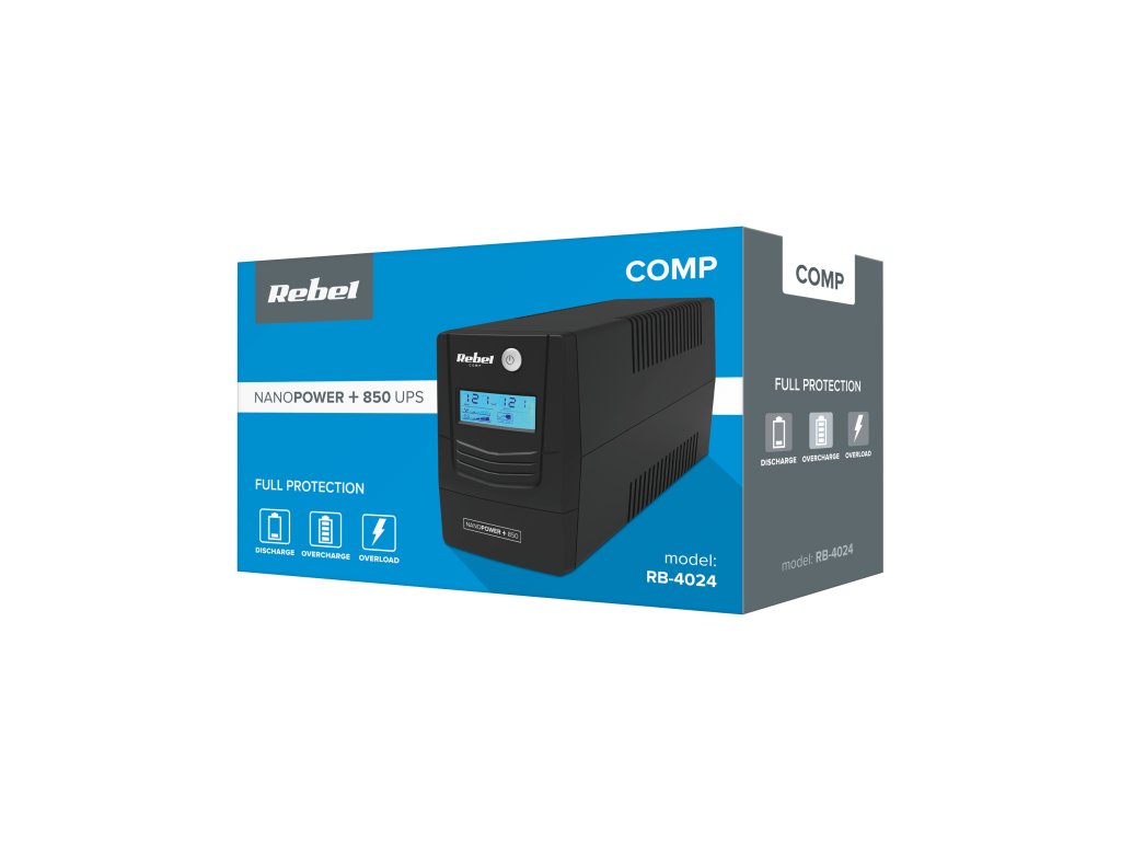 ARebel szünetmentes tápegységeket intuitív működés jellemzi. Egyszerűen csak csatlakoztassa a készüléket egy konnektorba, és csatlakoztassa az olyan eszközöket, mint a számítógép, laptop, router vagy pénztárgép, és hálózati hiba esetén azok működése folytatódik .Az RB-4024 modell egy jól látható LCD kijelzővel is fel van szerelve, amelyen gyorsan ellenőrizheti az UPS aktuális működési állapotát.