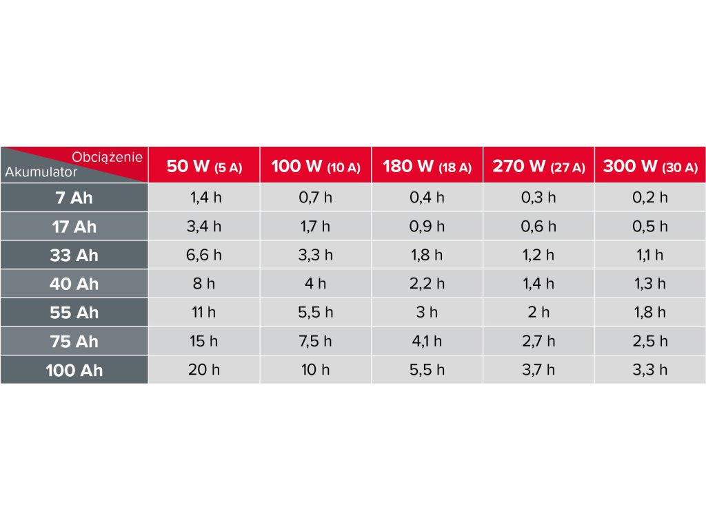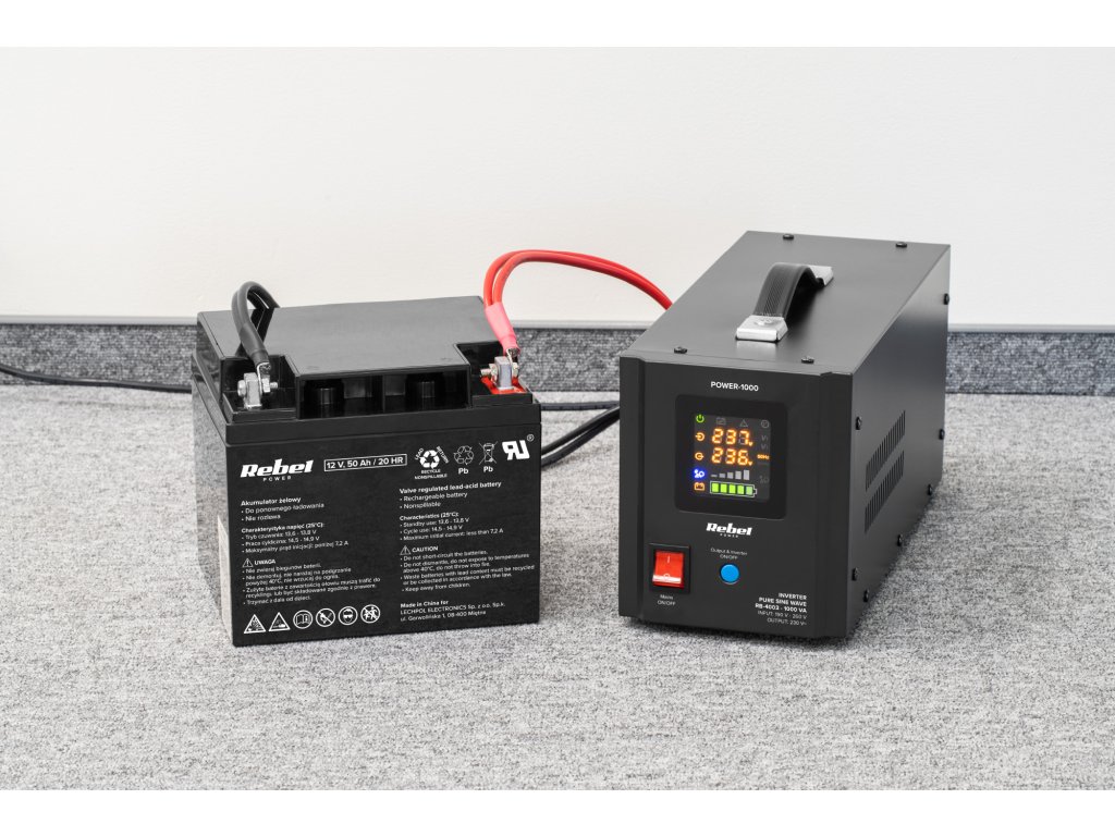 A Rebel vészhelyzeti áramforrás megfelelő működésének alapja a megfelelően kiválasztott akkumulátor. A megfelelő eszköz kiválasztásához használja a hozzávetőleges képletet: 100 W terhelés = 10 A fogyasztás az akkumulátorról.