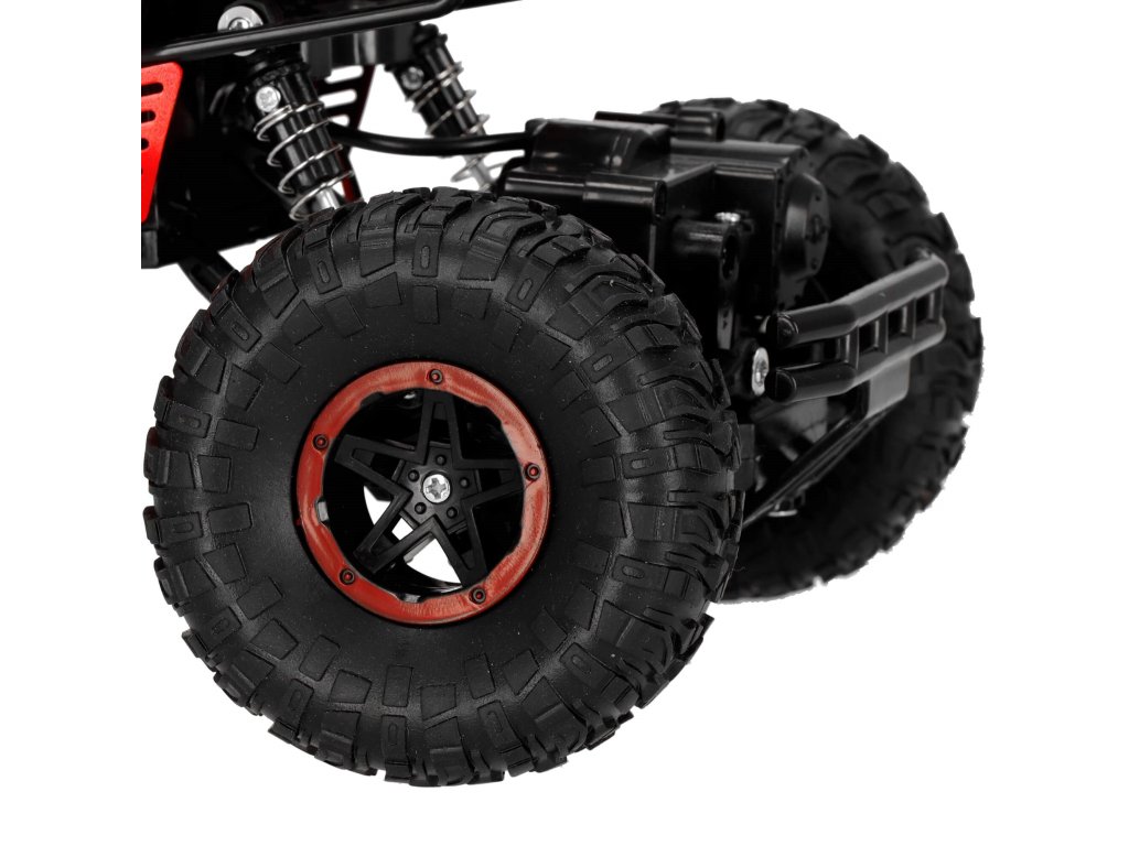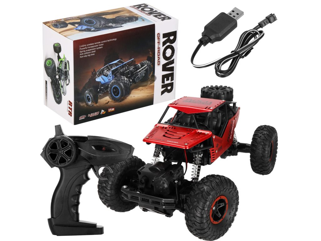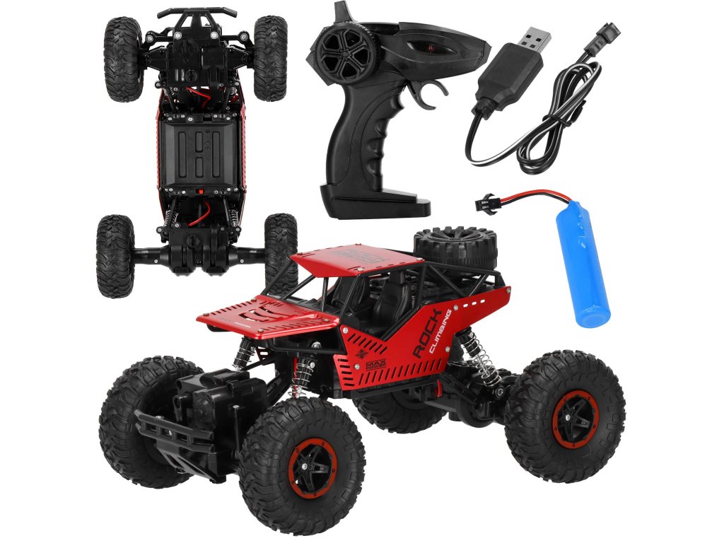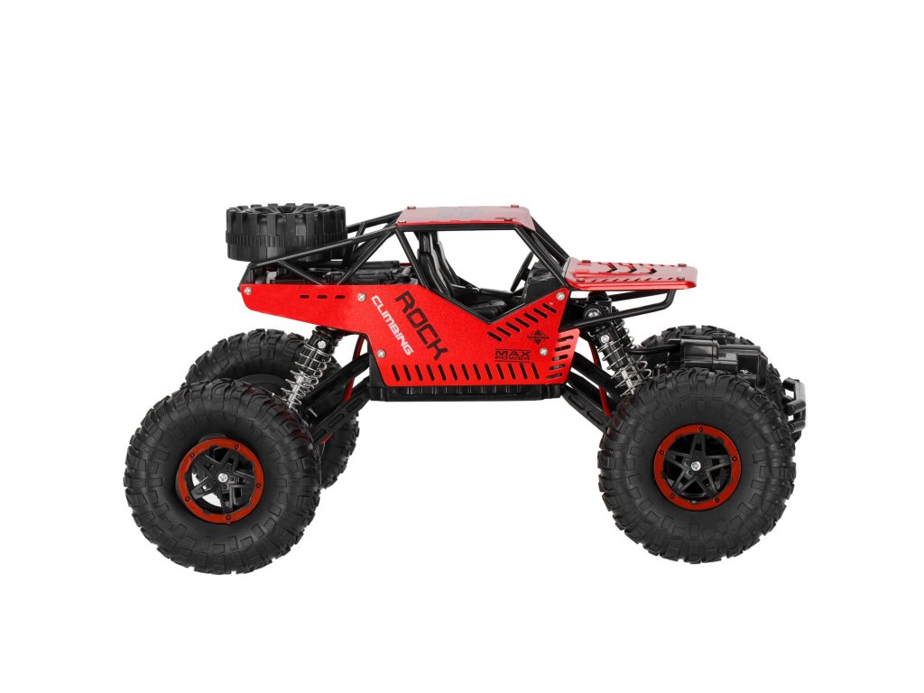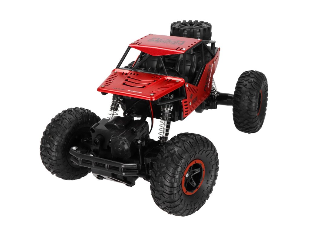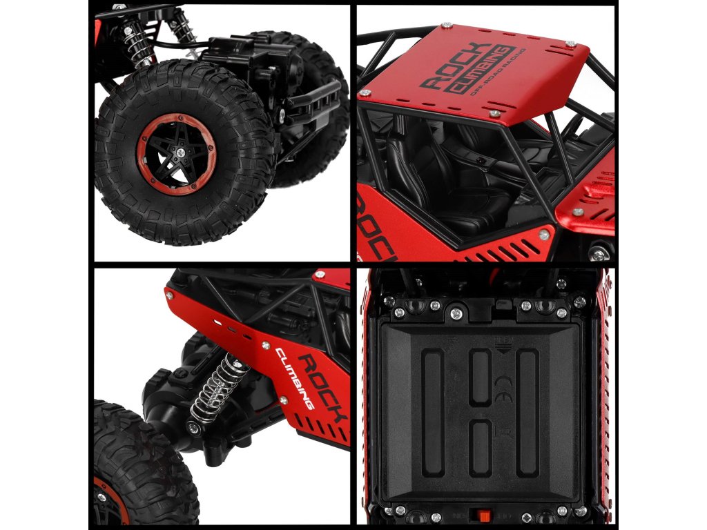 - A távirányító egy kapcsolóval, elembemenetekkel, a haladási utat (jobbra/balra) vezérlő kerékkel, a haladást (elöl/hátul) vezérlővel és egy piros diódával van felszerelve, amely az áramellátást jelzi