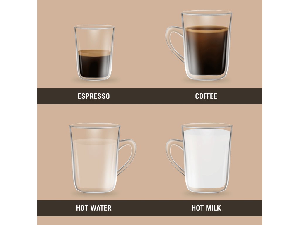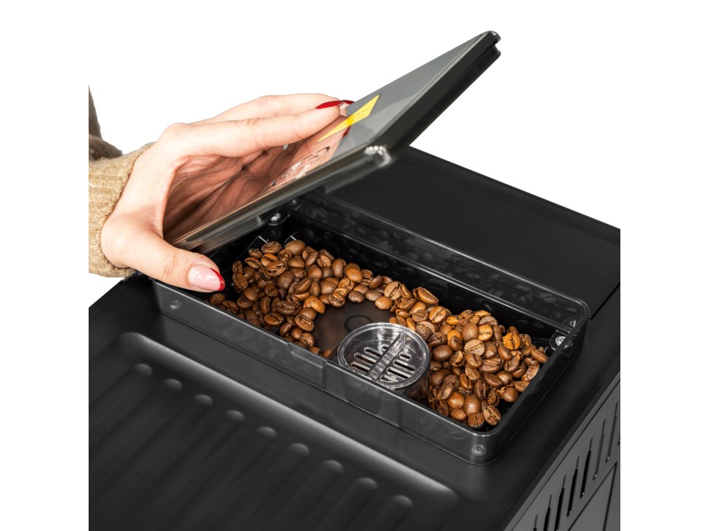 Az Aroma 750-nel pontosan a saját ízlése szerint állíthatja be a kávét. A kávé mennyiségének, erősségének, hőmérsékletének és a szemek őrlésének beállítása biztosítja, hogy minden csésze megfeleljen az elvárásainak. Ezenkívül beállíthatja a kávéadagoló magasságát is, így az alatt nemcsak eszpresszó- vagy cappuccino-csésze fér el, hanem akár a kedvenc bögréje is.