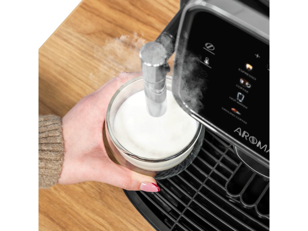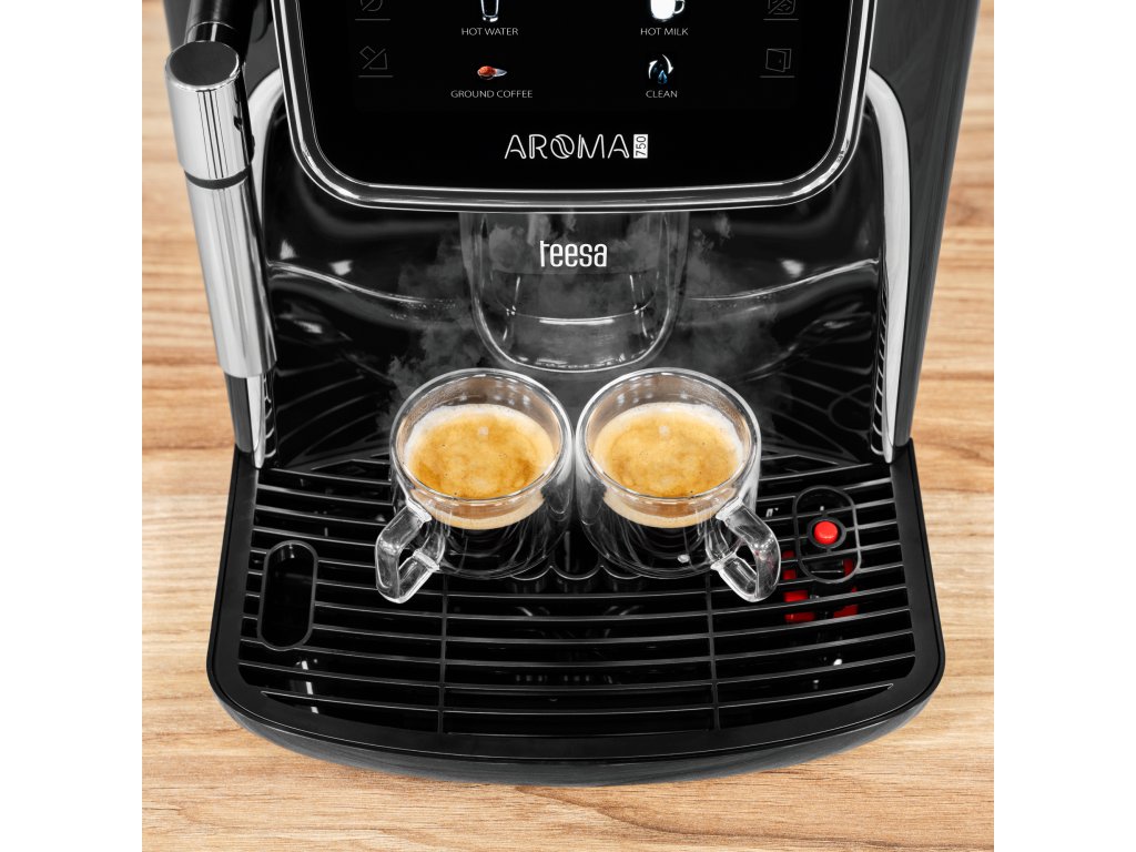 Az Aroma 750 segítségével tökéletes cappuccinót vagy lattét készíthet pillanatok alatt. A Teesa automata kávéfőző tejhabosító fúvókával rendelkezik, amely lehetővé teszi, hogy lágy és krémes habot adjon a kávéhoz.