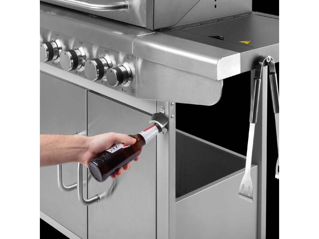 És ezzel még nincs vége a Teesa grill által nyújtott kényelmi szolgáltatásoknak. A készülék praktikus kampókkal is rendelkezik, amelyekre felakaszthatja a szükséges tartozékokat. Ezenkívül a grill palacknyitóval is fel van szerelve! Szintén említést érdemel a szekrény, amelynek köszönhetően rendben tarthatja a munkahelyét.