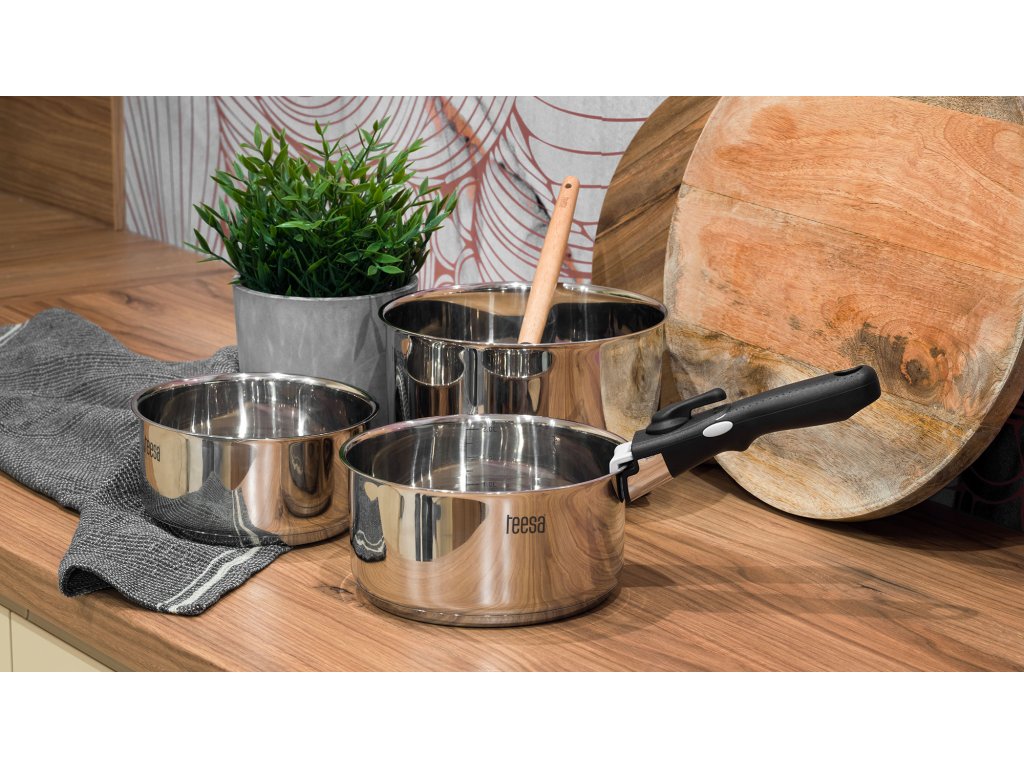 Egy stílusos konyha stílusos felszerelést érdemel. A Teesa Cook Expert egykezes rozsdamentes acél főzőedénykészlet pedig pont ilyen. Három edény áll rendelkezésre a többfogásos ételek gyors és kényelmes elkészítéséhez.