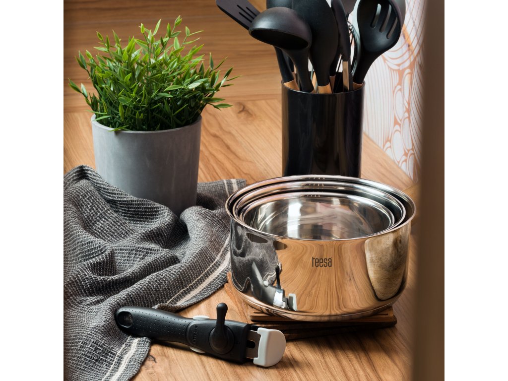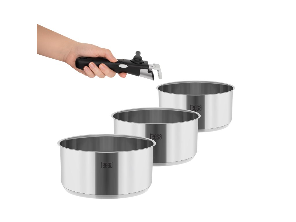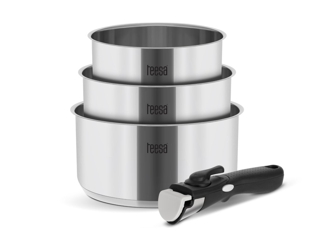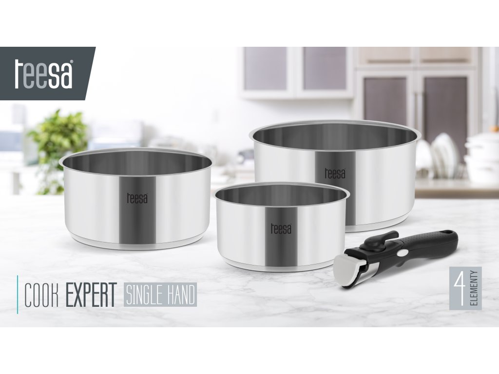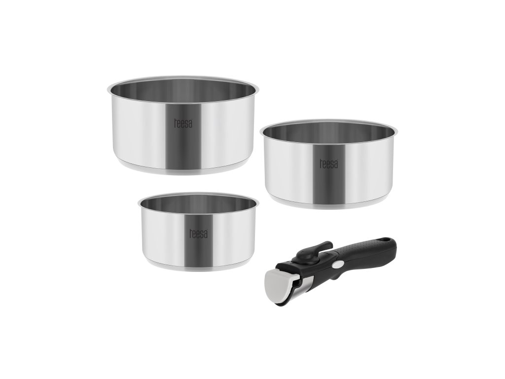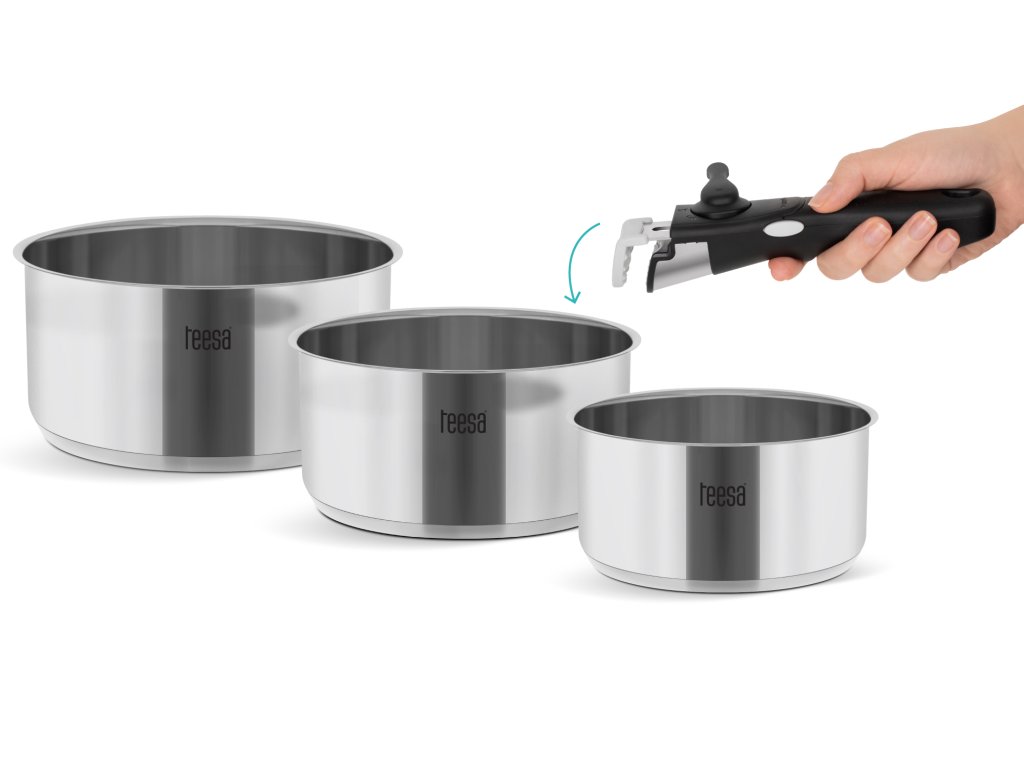A még könnyebb használat érdekében a Teesa Cook Expert egykezes készlet levehető fogantyúval rendelkezik, amely nem vezeti a hőt. Ez biztosítja a stabilitást és a biztonságot kedvenc ételeinek főzése közben.