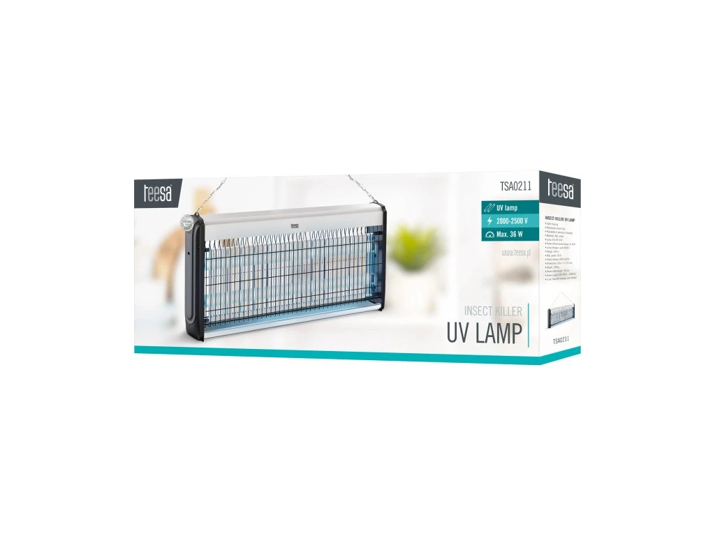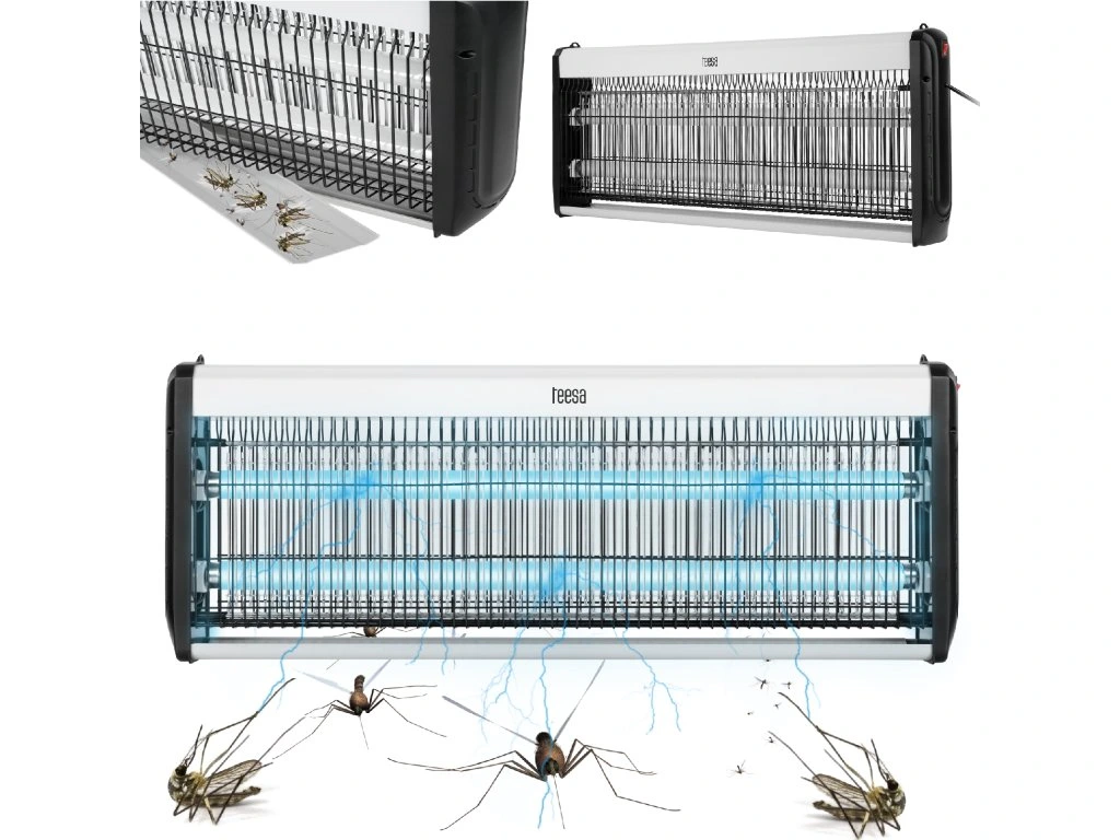 Elege van a legyekből, szúnyogokból és más bosszantó rovarokból Próbálja ki a Teesa UV rovarirtó lámpát. Ezt a modellt a legnagyobb hatékonyság érdekében tervezték, és nagy méretű helyiségekhez – akár 150 m2-ig – használható, így ideális raktárakba, üzletekbe vagy műhelyekbe.