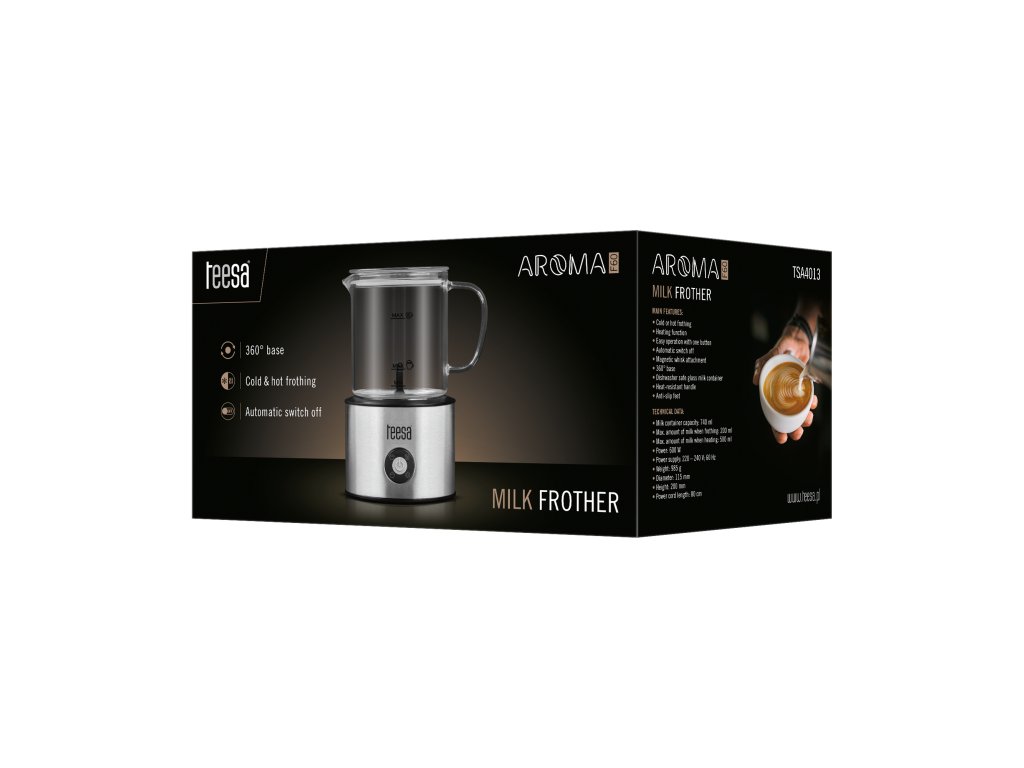 Nincs is jobb napindító, mint egy aromás kávé lágy, krémes habbal — különösen, ha elkészítése csak egy pillanat műve. A Teesa AROMA F60 tejhabosító modern indukciós rendszerének köszönhetően azonnal bársonyos habot készít kávéhoz, kapucsínóhoz, lattéhoz vagy forró csokoládéhoz.