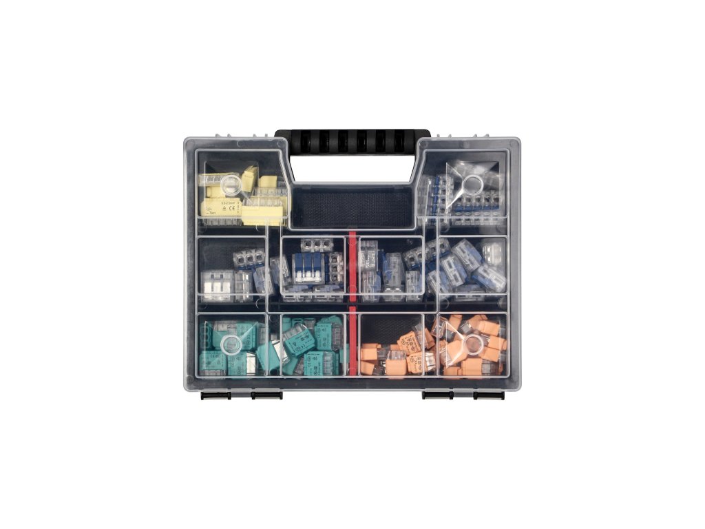- Praktikus csomagolás: A készlet különféle típusú és méretű csatlakozókat tartalmaz, amelyek áttekinthetően vannak elrendezve, megkönnyítve azok azonosítását és használatát pontosan ott, ahol szükség van rájuk.