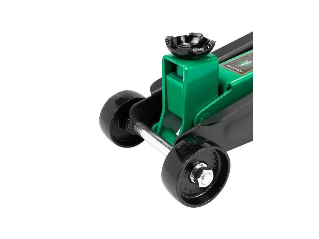 Az emelő tartós, fém kerekekkel van felszerelve, amelyek nem fognak eltörni az autó súlya alatt, még a hosszú távú műhelyhasználat során sem.