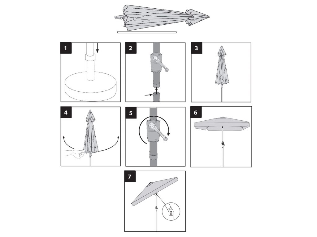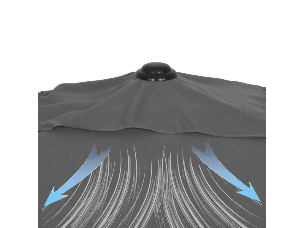 Erős széllökések esetén az ernyő nagy mérete és a hozzá kapcsolódó biztonság miatt ajánlott az ernyőt összecsukni.