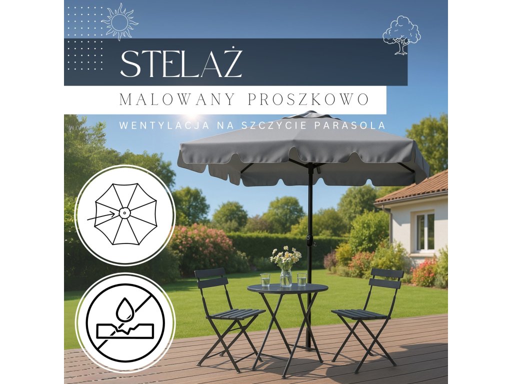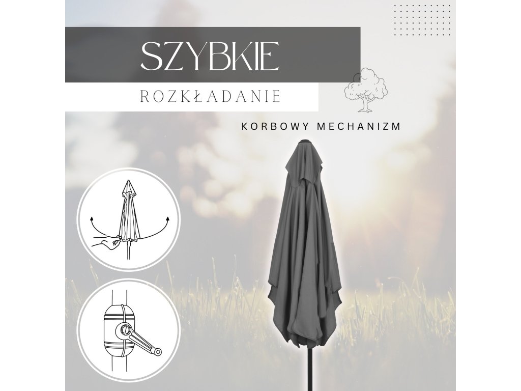 - Az esernyő fesztávolsága hosszirányban: 195 cm