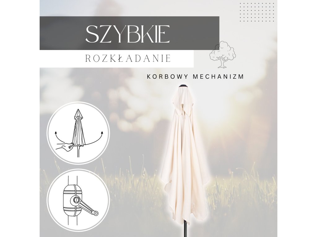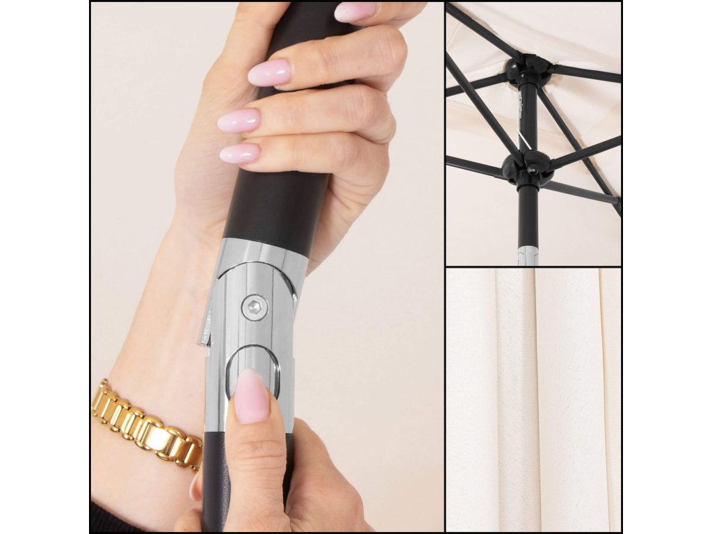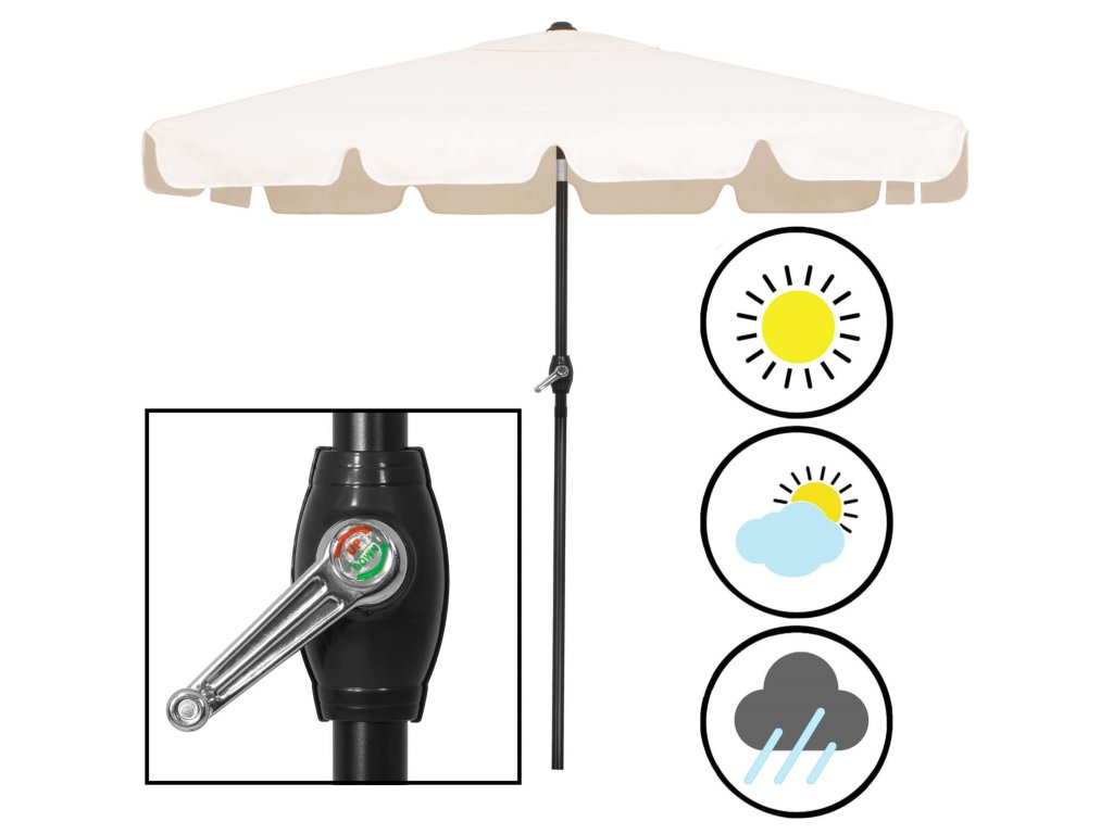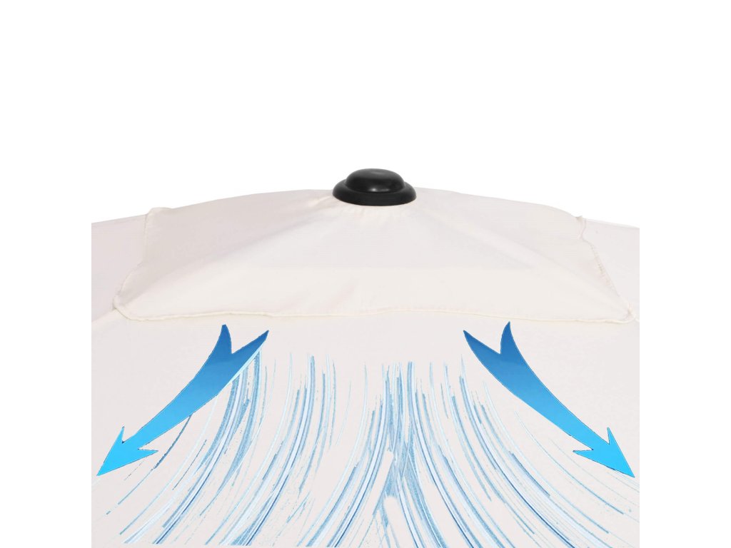 Erős széllökések esetén az ernyő nagy mérete és a hozzá kapcsolódó biztonság miatt ajánlott az ernyőt összecsukni.