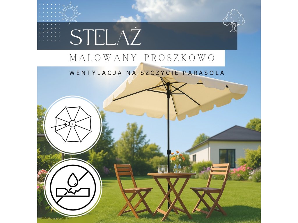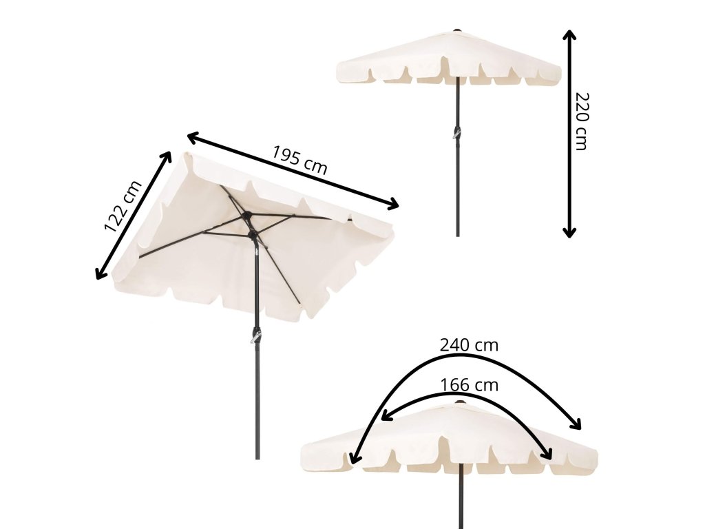 - Esernyő fesztávolsága hosszirányban: 195 cm