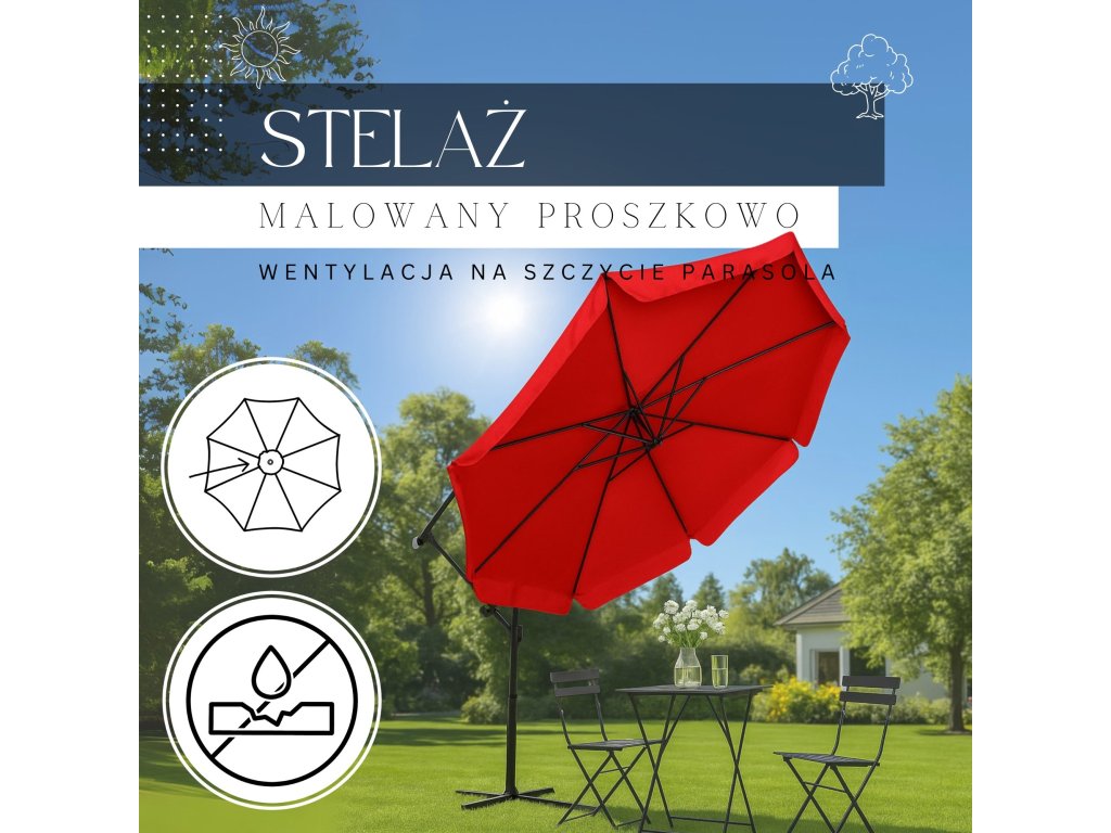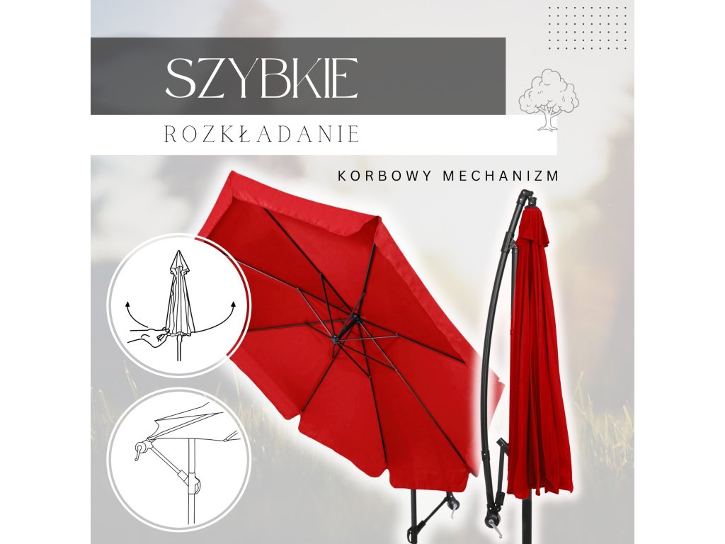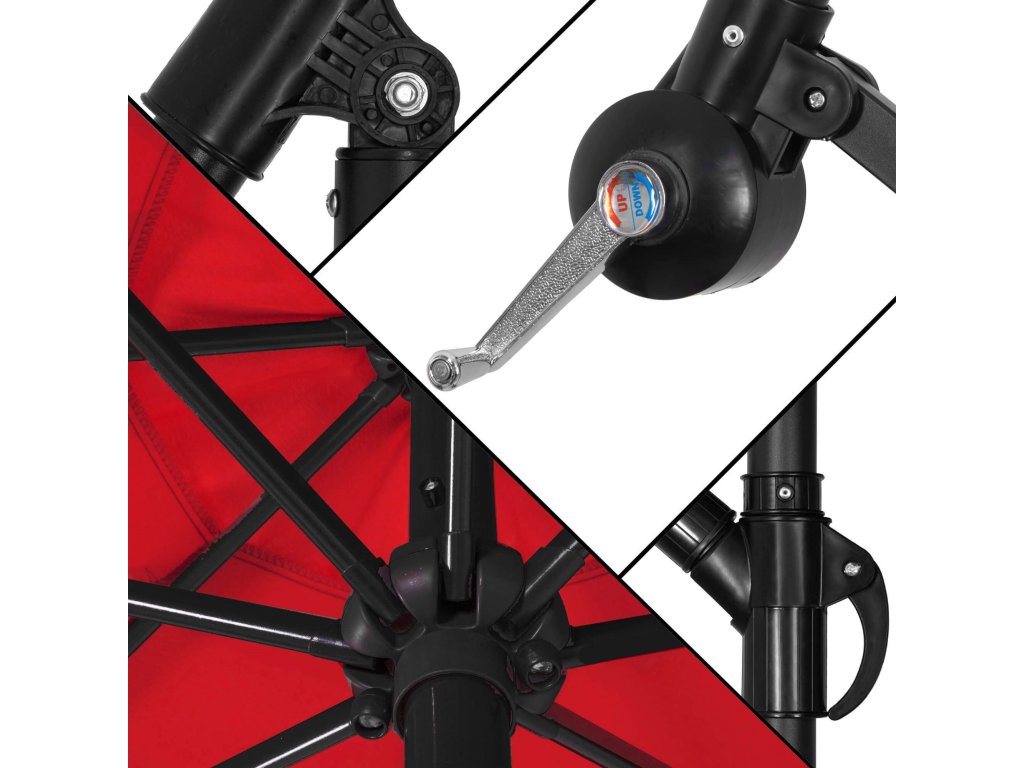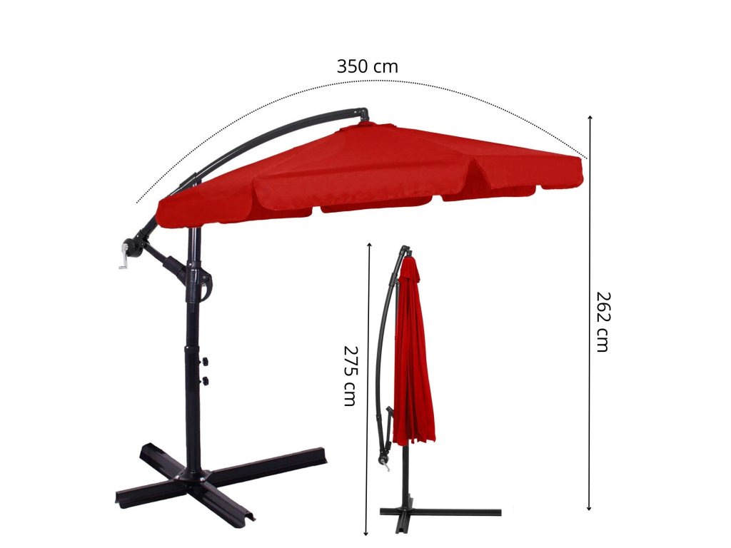 - Magasság összehajtott ernyőtetővel és lehajtott gémmel: 275 cm