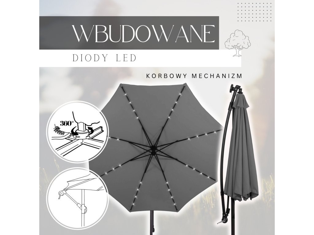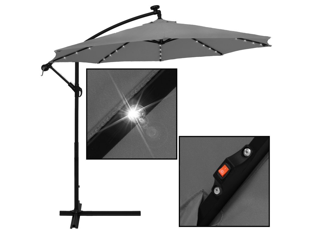 - Az ernyőernyő karjaiba ágyazott LED-ek