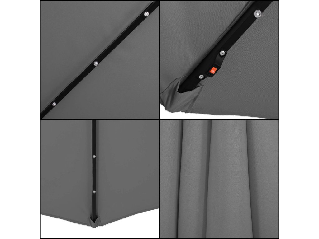 - Teljes magasság (kibontott ernyővel): 330 cm max. magasságban
