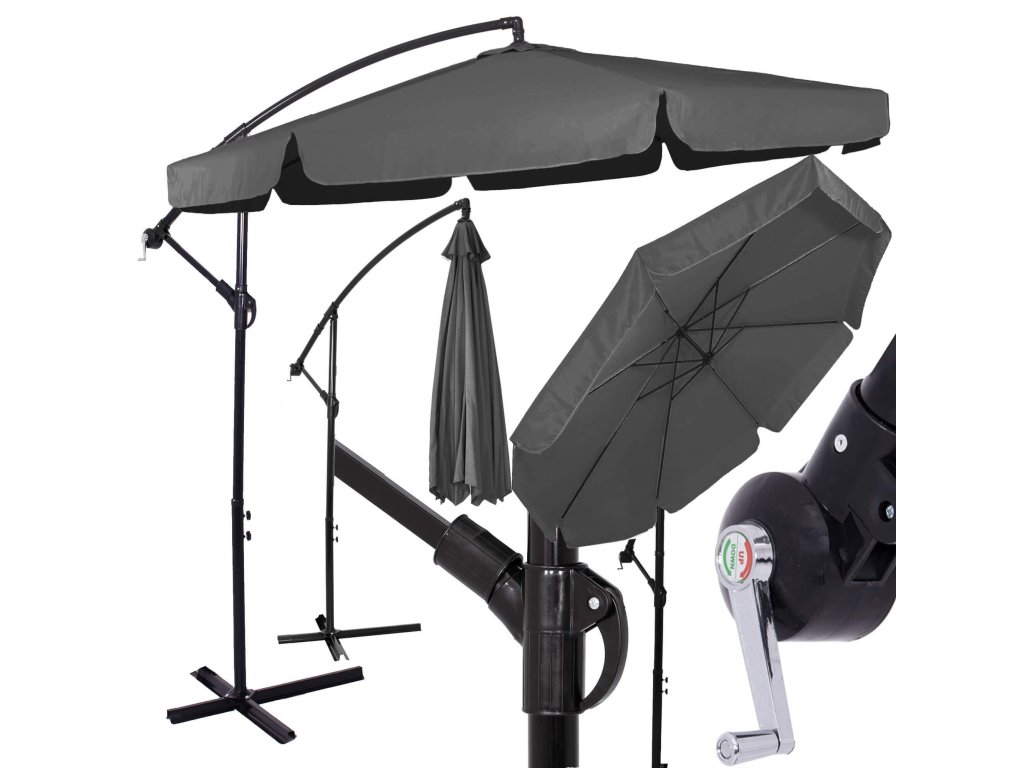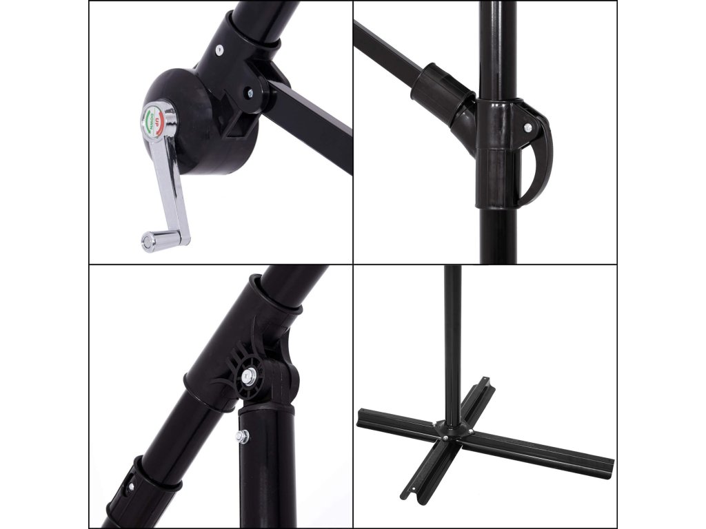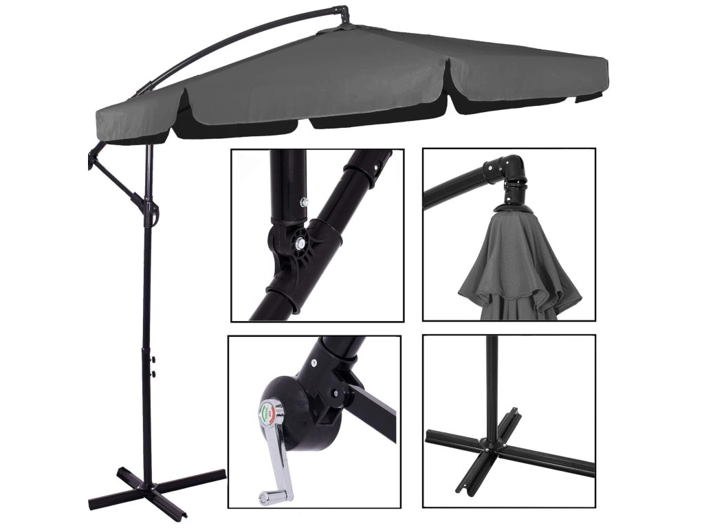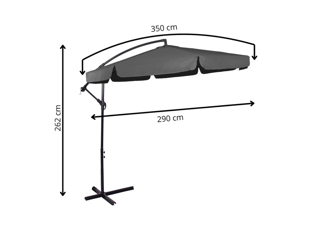 - Magasság összehajtott ernyőtetővel és lehajtott gémmel: 275 cm
