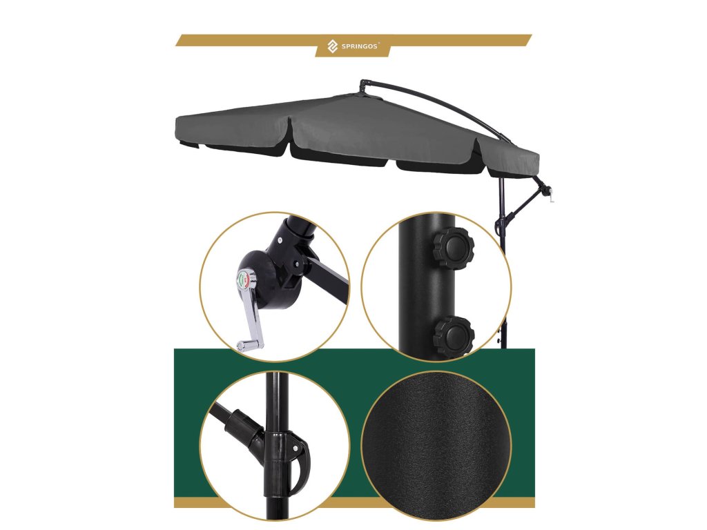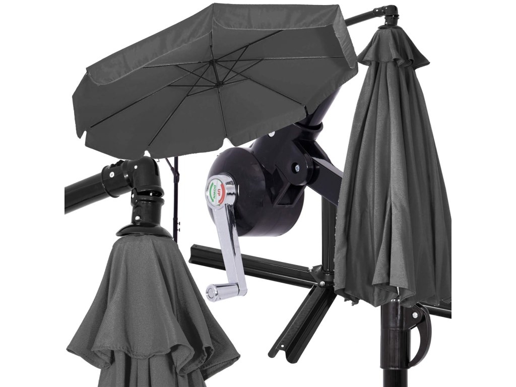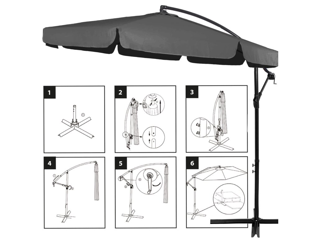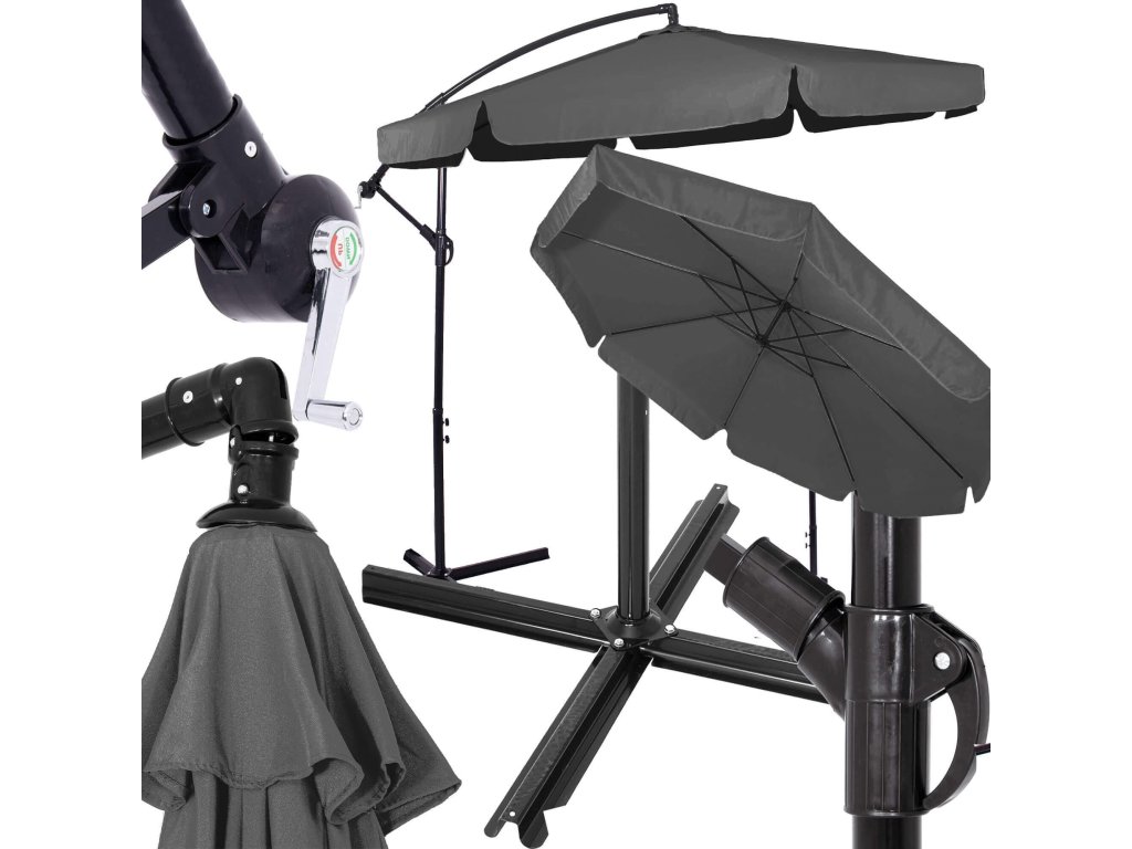 - Magasság összehajtott ernyőtetővel és lehajtott gémmel: 275 cm