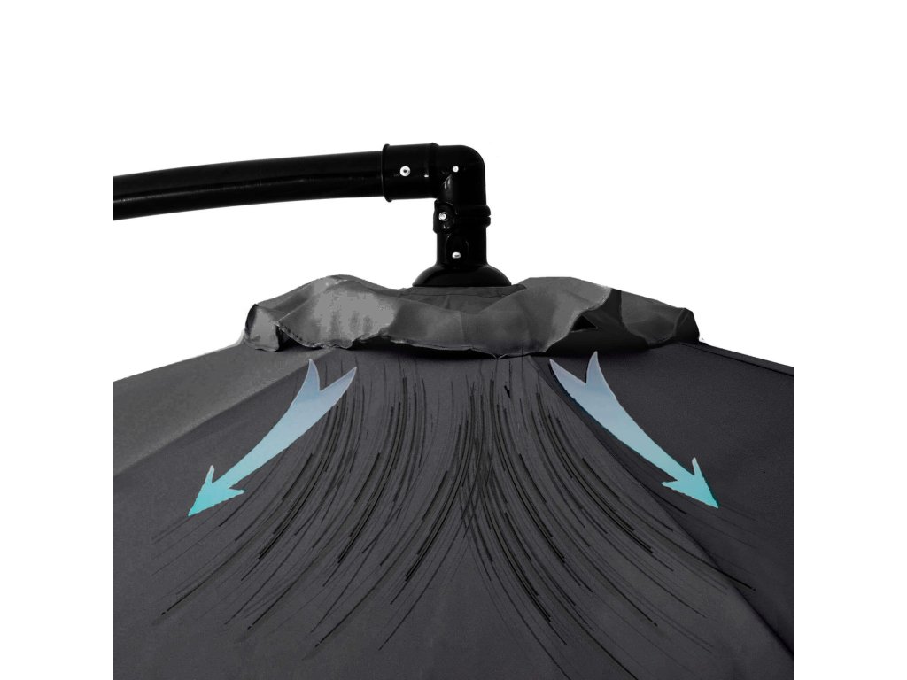 Erős széllökések esetén az ernyőt ajánlott összecsukni az ernyőtető mérete és a hozzá kapcsolódó biztonság miatt.