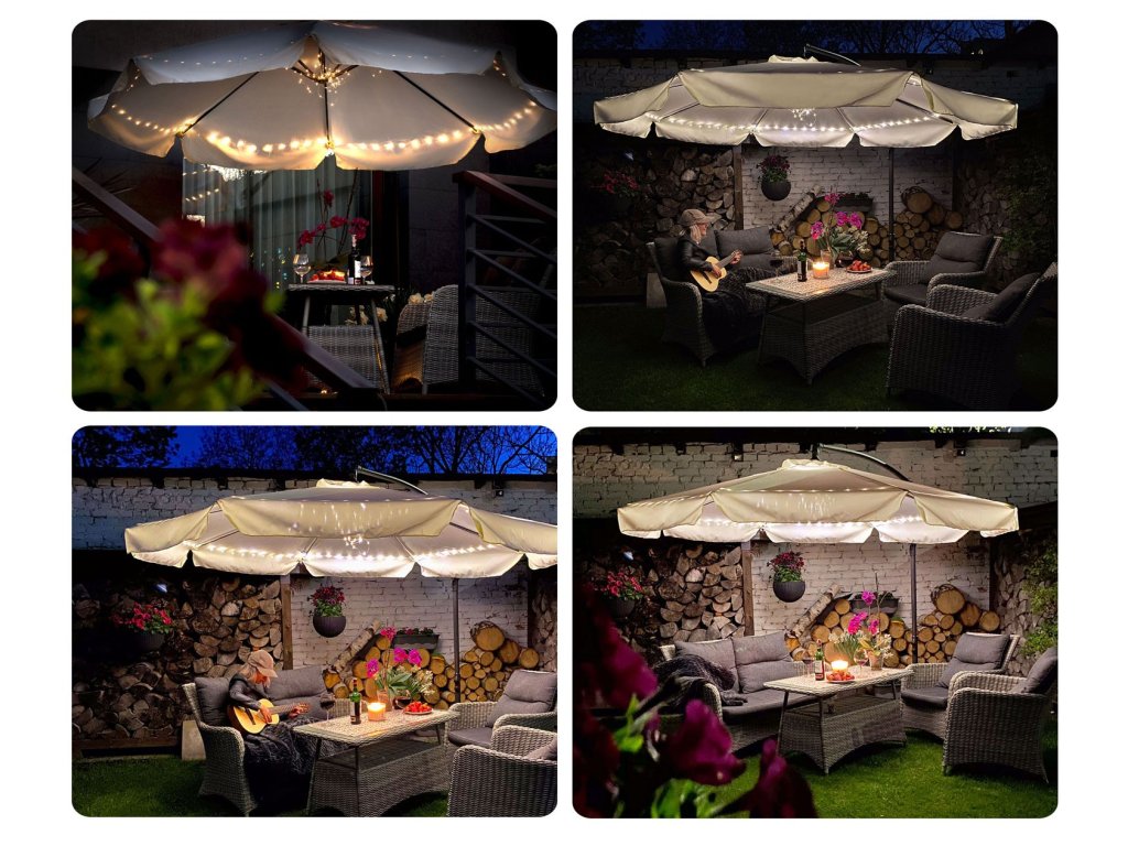 *a képeken látható világítás nem tartozik az esernyőhöz