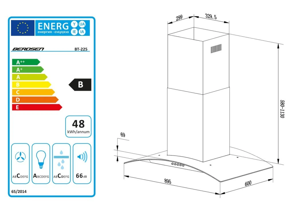 - kéménymagasság 580 - 1130 mm (2 x 600 mm)