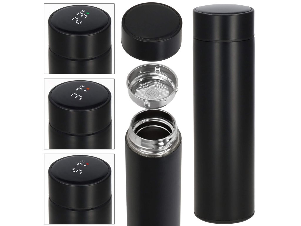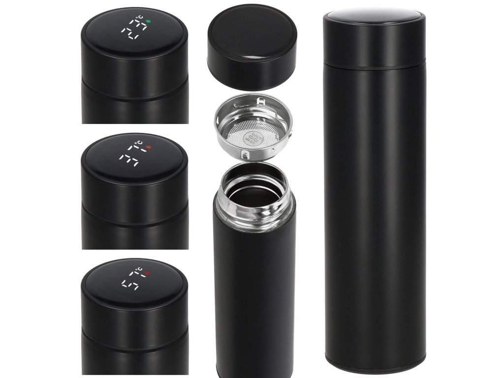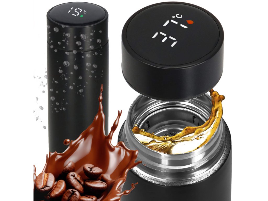 - A kupak tetején található elektronikus hőmérséklet-kijelző Celsius fokban, a kijelzőn a csepp színe jelzi az ital hőfokát: zöld, narancssárga, piros