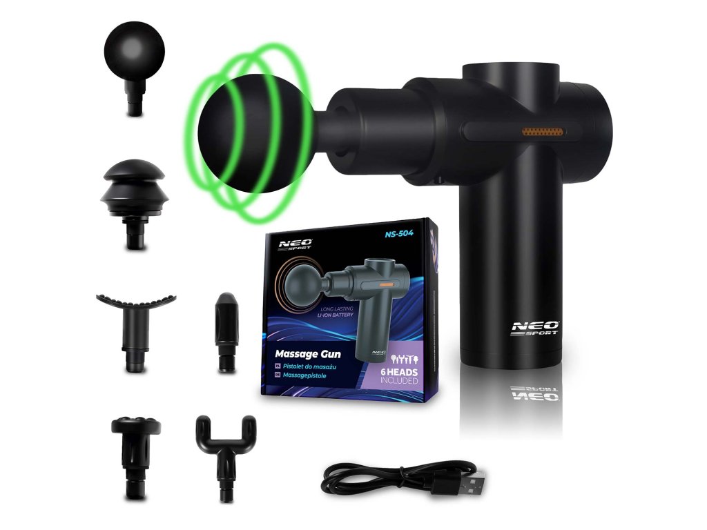 Testmasszázs pisztoly 6 fejes NS-504 Neo-sport fekete
