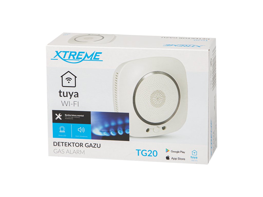XTREME gázérzékelő érzékelő a készülék konfigurálásának lehetőségével a beépített Wi-Fi és a dedikált TUYA SMART LIFE alkalmazás segítségével. Chad érzékelés esetén az érzékelő hangos és vizuális figyelmeztetést ad egy piros LED-en keresztül.