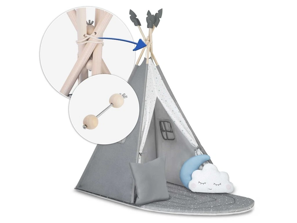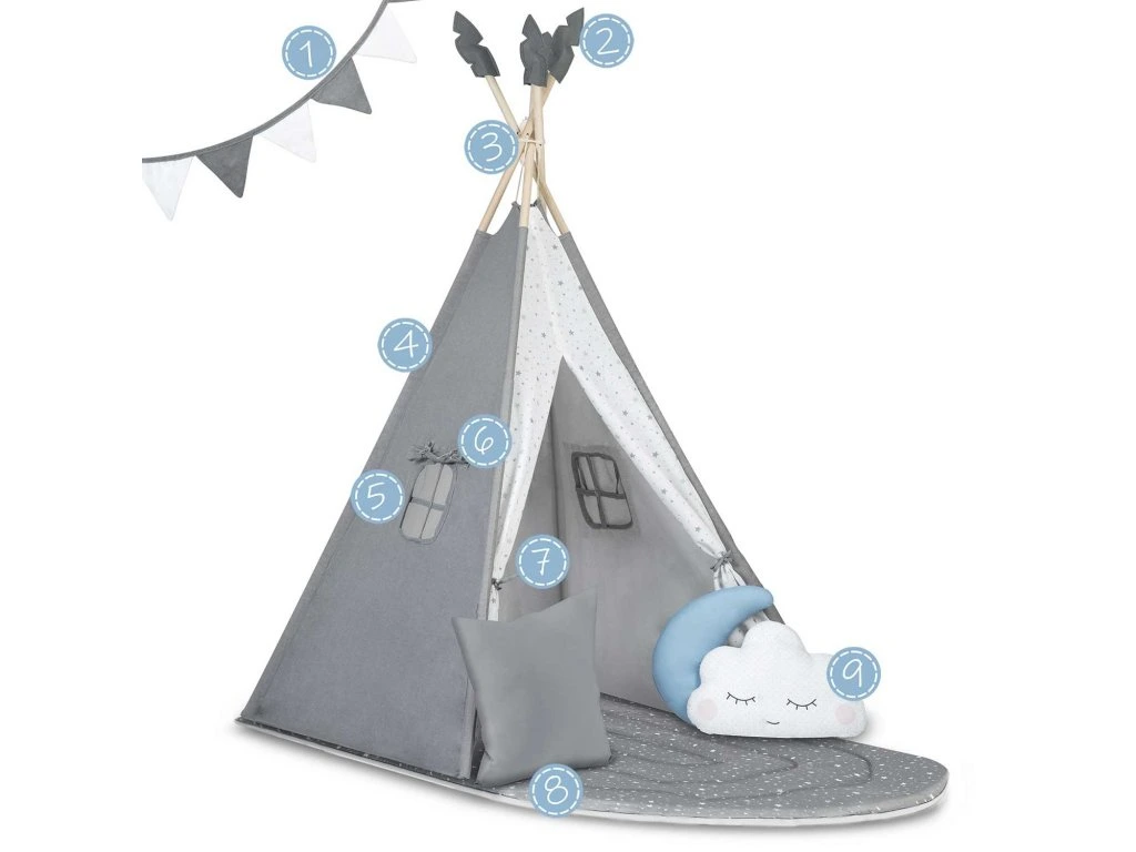 Az indiai Tipi formájúTeepee sátor kiegészíti a gyerekszoba dekorációját.