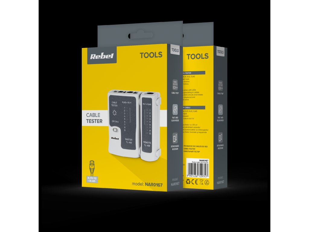 Érzékelhető rendellenességek: rövidzárlat, nyitott áramkör, kapcsolt vezetékek, kapcsolt párok Csatlakozó: RJ45/RJ11 Jelzés: 9 LED Tápegység: 6F22 9 V-os elem A készlet tartalma: főegység, távvezérlő egység, hordtáska, használati útmutató