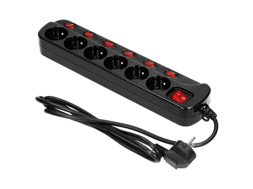 Multiswitch hosszabbító 6 aljzattal, 1,5 m kábel, fekete
