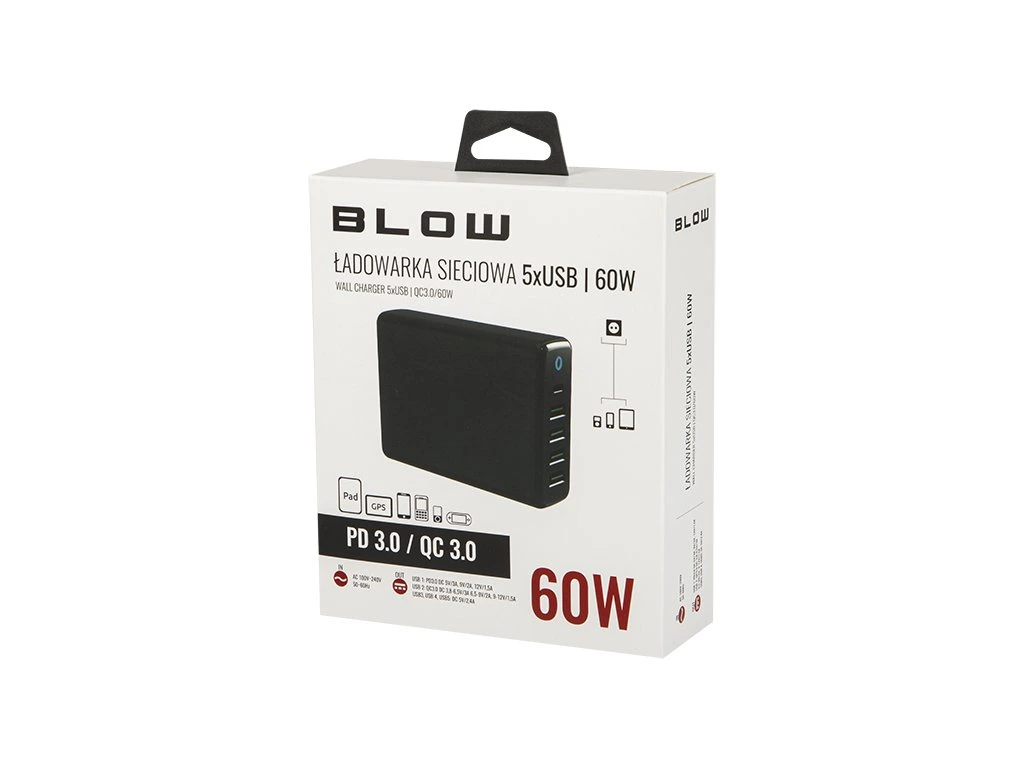 Töltő USBx5 QC3.0 60W-os töltővel