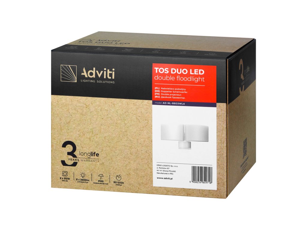 TOS DUO LED 2x20W dupla kerti reflektor, 2x1600lm, IP65, 4000K, PC, fehér