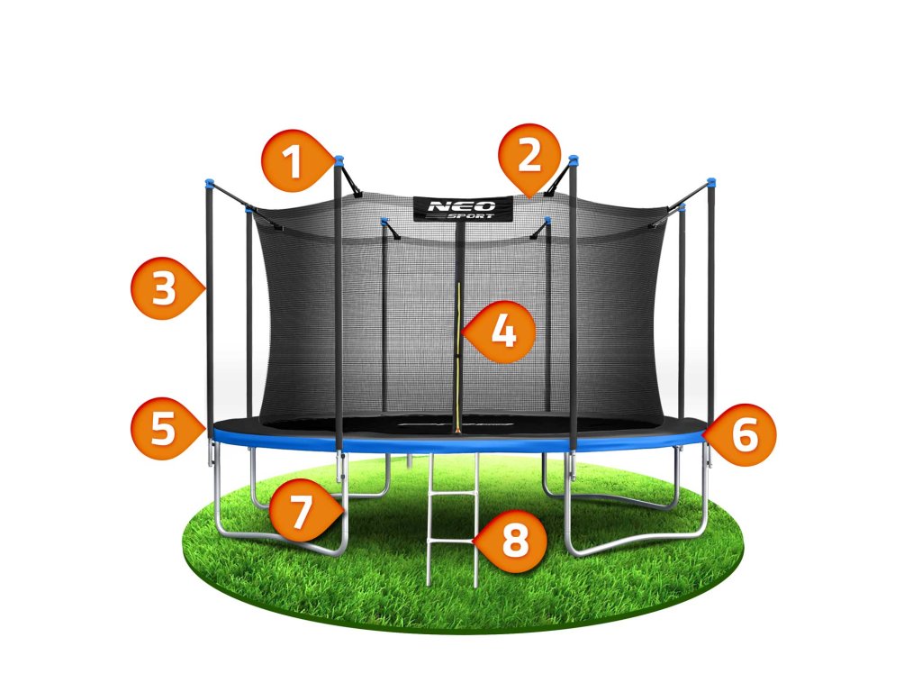 - a készlet tartalmaz: kerti trambulint, biztonsági hálót, fém létrát, használati útmutatót