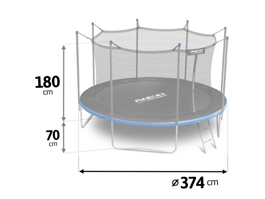 - 374 cm (12 láb) trambulin 4 dupla lábbal,fém létra széles fokokkal