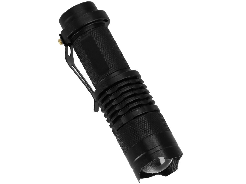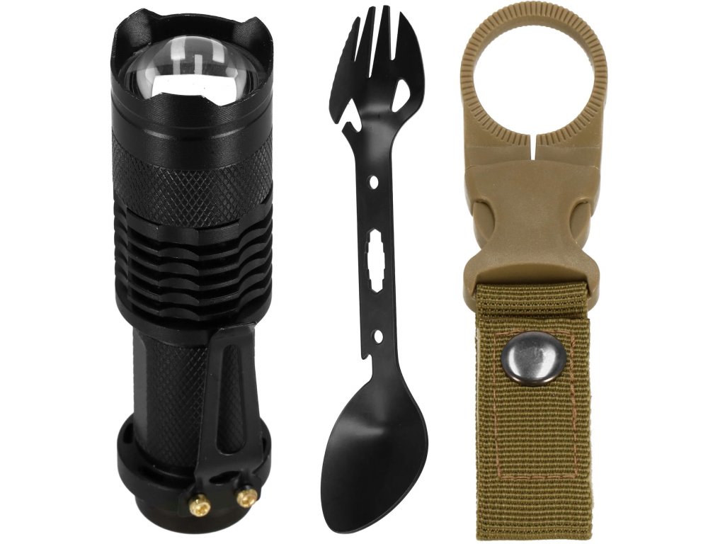 - 1x taktikai zseblámpa - állítható fénysugárral + rögzített klipsz / hossza: 10 cm, átmérője: 5 cm