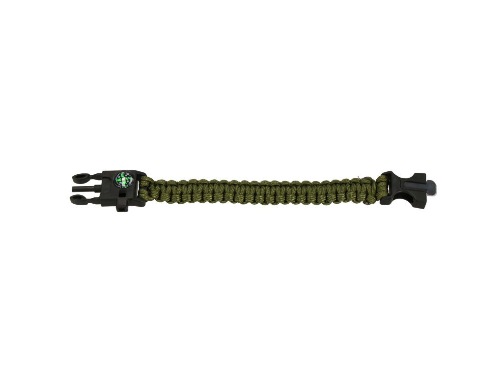 - 1x paracord karkötő iránytűvel, öngyújtóval és síppal - hossza: 25 cm