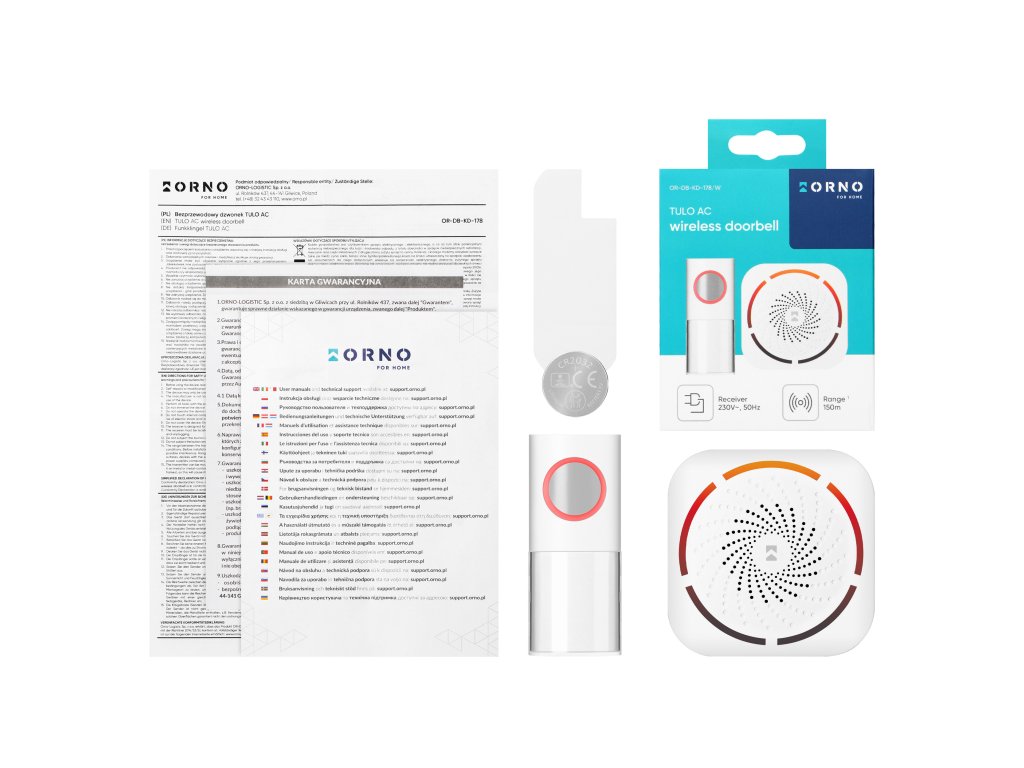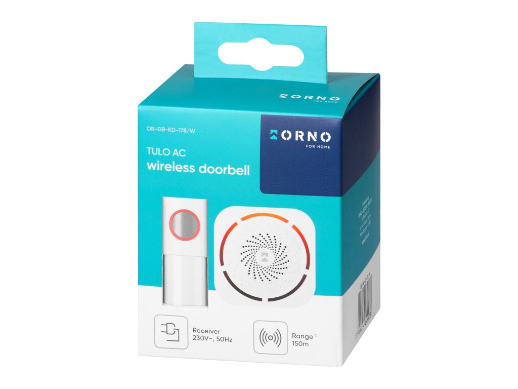 TULO AC, vezeték nélküli hálózati ajtócsengő, tanulórendszer, 36 hang, 150m, fehér