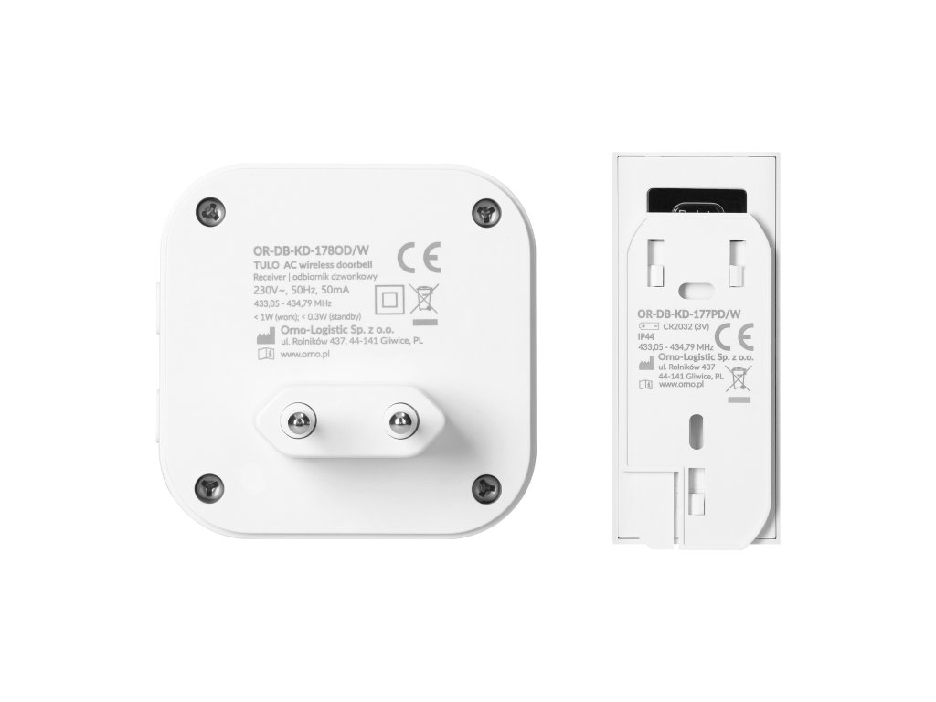 A vezeték nélküli, elemmel működő TULO DC csengő egy modern és megbízható készülék, amely tökéletes minden háztartás számára. A vezeték nélküli rendszernek köszönhetően nincs szükség telepítésre – az adó elhelyezhető az ajtónál vagy kapunál, míg a vevő bárhol a házban bedugható egy aljzatba. A készülék 433,92 MHz-en működik, és nyílt terepen akár 150 m-ig terjedő hatótávolságával nagy rugalmasságot biztosít az elemek elhelyezésében, még nagyobb házakban vagy kertekben is.Az adó IP44 minősítéssel rendelkezik, ami hatékony védelmet nyújt az eső és por ellen. Ezáltal tökéletes kültéri használatra, még zord időjárási körülmények között is. A készülék háttérvilágítással rendelkezik, ami megkönnyíti a sötétben való használatot, valamint egy praktikus táblával a név vagy házszám számára. Az energiaellátást egy beépített CR2032 elem biztosítja. Tartós fehér műanyagból készült. Méretei: 33x77x18 mm.