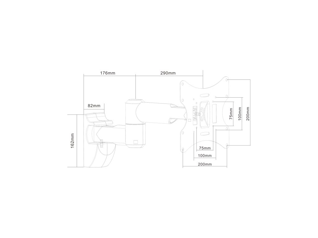 LCD TV-khez tervezve Szín: ezüst Képernyőkhöz: 23" - 42" Maximális terhelés: 30 kg VESA szabvány: 50/75/100/200/200/200/200x100 mm Állítás: függőleges és vízszintes