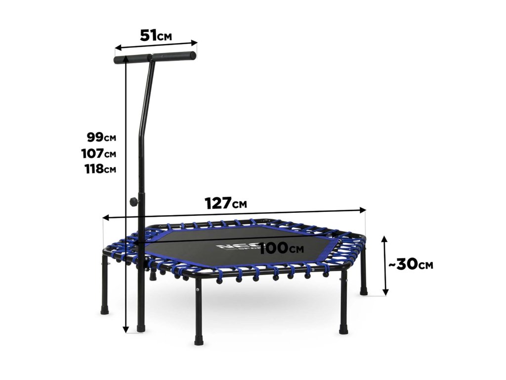 A Neo Sport fitnesz trambulin egy bevált edzőeszköz, így biztos lehet benne, hogy hosszú ideig fogja szolgálni Önt. További előnye az egyszerű összeszerelhetőség és a trambulin lábain lévő csúszásmentes párnák, amelyek biztosítják a stabilitást ugrálás közben.