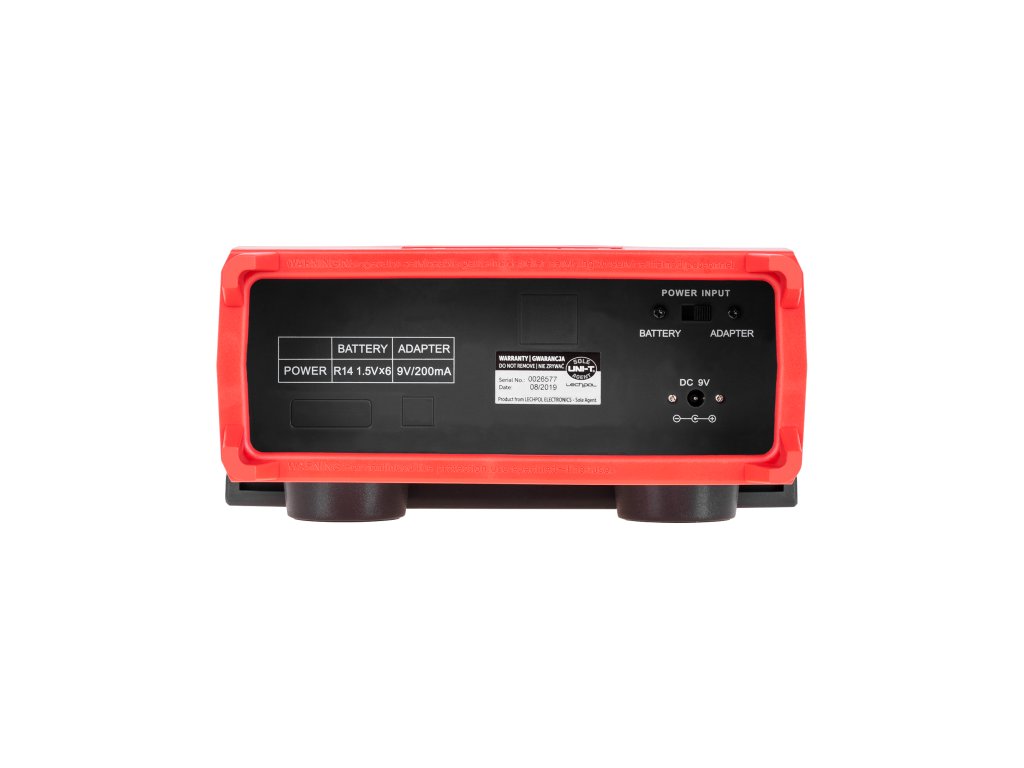 10 MOhm Tápegység: AC 220 V/50 Hz vagy 6x 1,5 V (R14) Kijelző: 108 x 34,5 mm Méretek: 300 x 245 x 105 mm Súly: 1,65 g Tartozékok: tesztvezetékek, rövid krokodilvezetékek, hőmérsékletmérő szonda, tesztaljzat, hálózati adapter