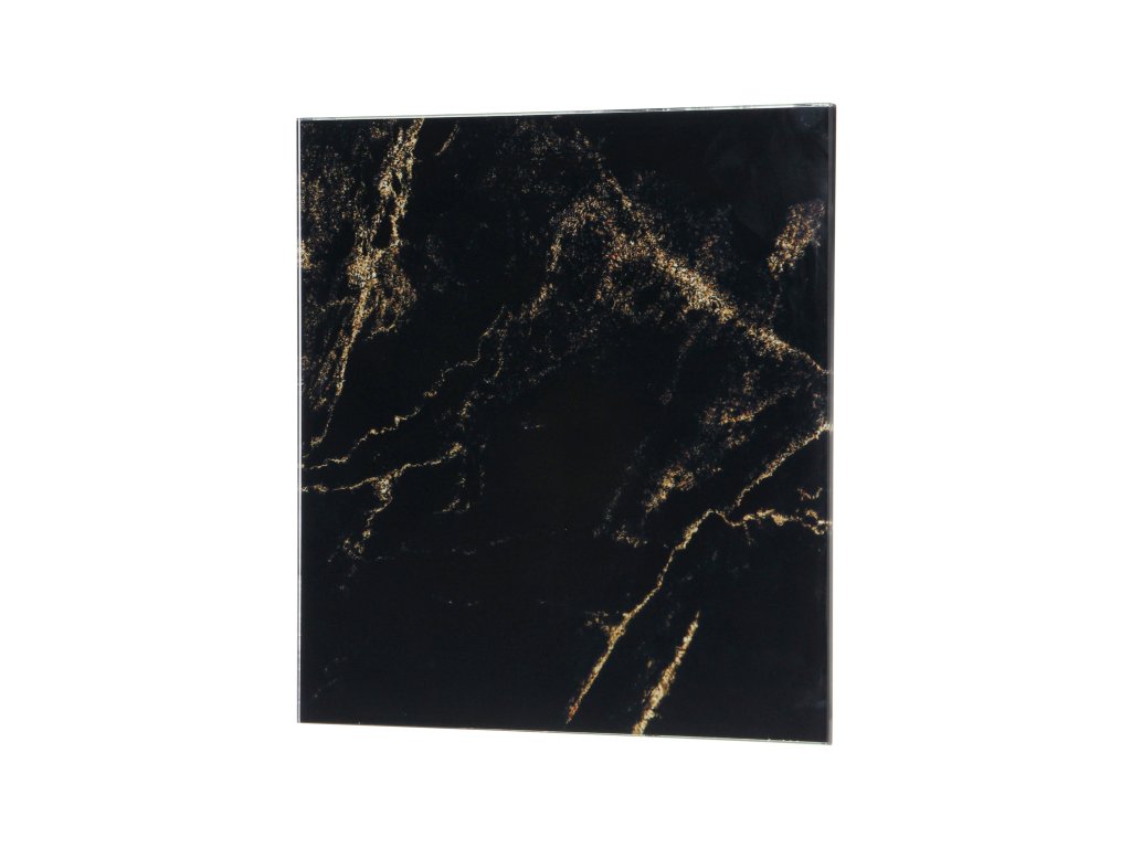 - Elegáns dizájn: Az üvegpanel fekete-arany márvány textúrával luxus megjelenést kölcsönöz terének.