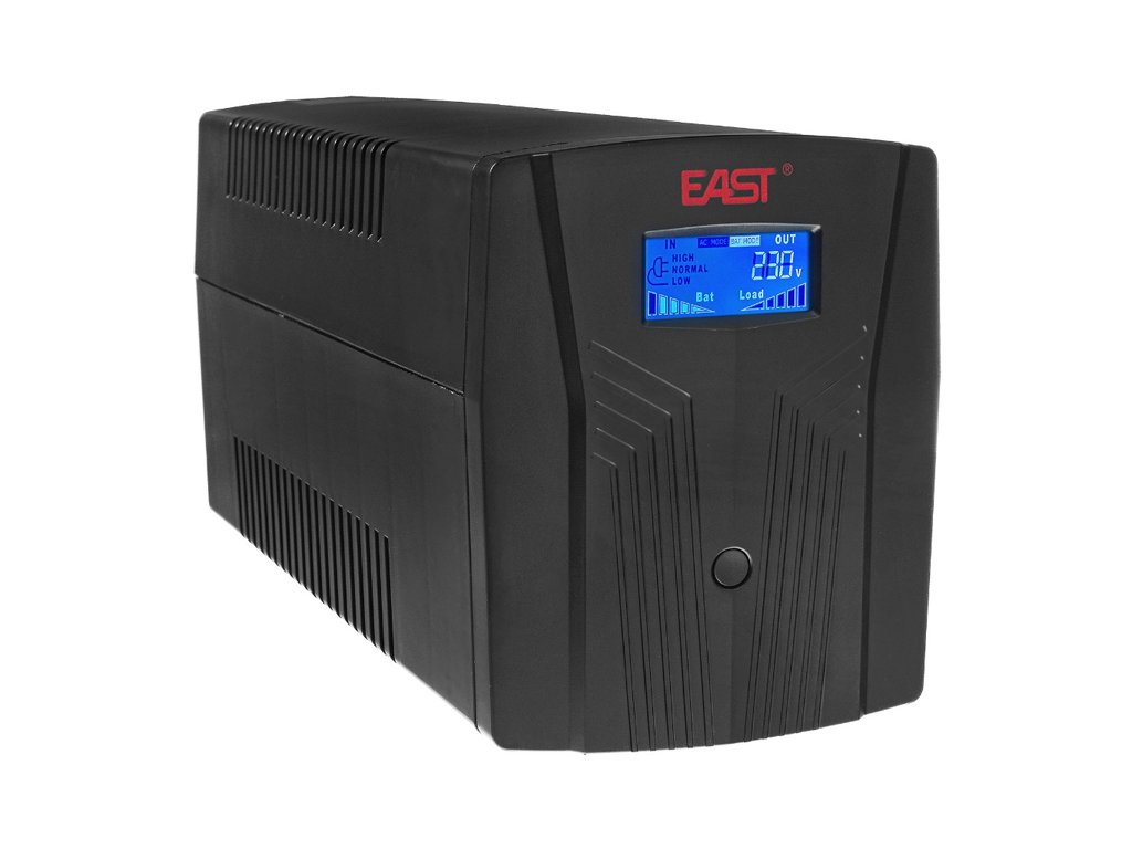 UPS1200-T-LI/LCD az EAST vállalat UPS-je, amely átfogó védelmet és nagy energiaellátást biztosít egy kis és gazdaságos házban. Az UPS védi az áramkimaradásoktól és a feszültségzavaroktól. Ezen kívül ez az UPS védelmet nyújt a túlfeszültségek ellen RJ-45(in/out). Feszültségstabilizálóval (AVR) ellátva az UPS tiszta és stabil áramellátást biztosít a csatlakoztatott eszközöknek. Ideális bármilyen felhasználásra otthon vagy egy kis irodában. UPS1200-T-LI/LCD LCD kijelzővel rendelkezik, amely alapvető információkat nyújt az eszköz állapotáról, USB USB csatlakozóval, amely lehetővé teszi a számítógéphez való csatlakozást. Két karbantartást nem igénylő AGM akkumulátorral van felszerelve, amelyek kapacitása 7Ah, és 6 - 8 óra alatt töltődnek fel.